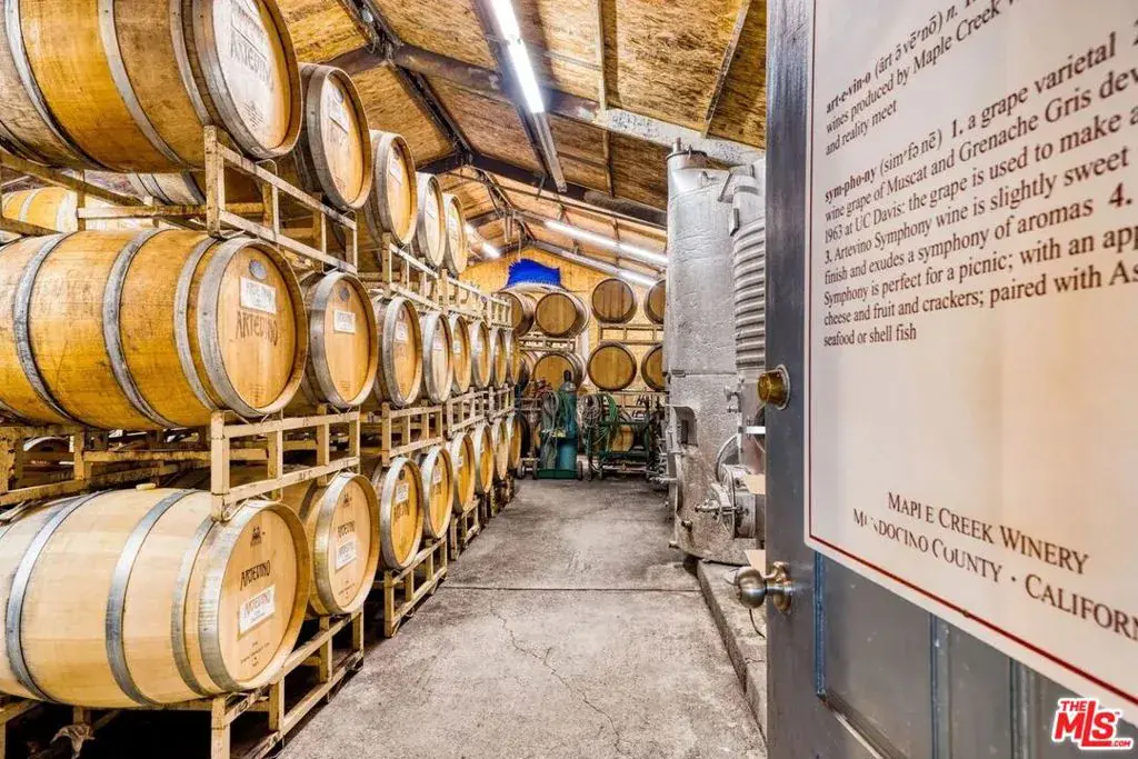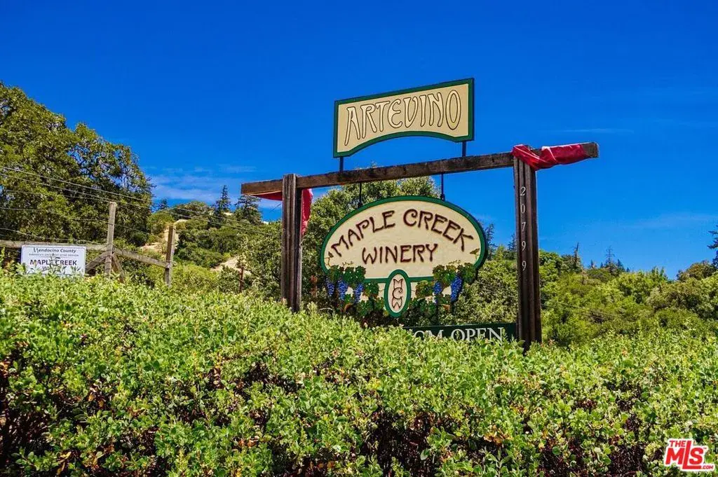 Rare opp to own Maple Creek Winery and Wellness Ranch, world famous for its double gold award wining wine in Mendocino County – where the redwoods meet the vineyards. This 164 acre property qualifies for the Williamson Act and is agricultural / farm land. Enjoy the health benefits of the clean spring water from the multiple springs that run on the property. Land a helicopter on its helipad to visit its tasting room and enjoy the award winning natural wines and taste with the winemaker / artist / owner Tom Rodrigues who is a favorite among visitors for his knowledge, witty insights, and renowned creative works for painting as featured in The Baseball Hall of Fame, production manager and designer at Skywalker Ranch in the glass studio, and wine label graphic designer incl. Far Niente, Nickel & Nickel, Dole, EnRoute, Bella Union, Post & Beam. Walk through the neighboring redwood preserve with trees thousands of years old, take part in horseback riding and host horses in the multiple stalls next to a beautiful art studio, wake up to gorgeous sunrises and toast to stunning sunsets, take part in mushroom hunting and more. The Maple Creek Winery is home to Artevino which is handcrafted, artfully made, double gold award winning Chardonnay, Pinot Noir, Merlot, Flora and Cabernet Sauvignon. This is the Porsche club annual pitstop for community connection. The original owners used this property as a bed and breakfast and currently it is a well respected and beloved winery and wellness California jewel. Wake up to deer, foxes, wild pigs, bald eagles – the wildlife is unbelievable! The quality of the water has been tested and full of natural minerals thought to be from an underground natural aquifer from Oregon. There are two wells on the property, 50 feet deep, 15 gallons a minute – this is the purest water one can find. The main house includes 2000 square feet of deck to enjoy epic views, each bedroom is connected to a bathroom, specialized hardwood floors, vaulted ceilings, massive natural rock fireplace and bountiful windows to appreciate the nature. Enjoy the panaramic views from your private deck hot tub. New roof. A tiny home on the property is where current wine club members have exclusive access to reserve and enjoy. The tasting room with its natural wine with no additives is open five days a week and includes a mini gallery of owner’s art. Annual wine club party, pizza parties, weddings, family events are a regular at the property. The longest paved driveway in Yorkville. Art studio attached to the stables with an enclosed barn. Guest house includes outdoor shower and a wood burning stove. Open meadows, 3000 square foot fenced in flower and vegetable garden with an orchard with a variety of fruit trees, fenced in half acre vineyard. Great glamping opportunity, room to add pool / tennis courts (like neighboring ranch). Close to Michelin star restaurants, the Mendocino coast, local shops. There is endless parking at the property, had over 30 Porsches and 40 additional cars parked for events. So much to see and explore on this special property, we look forward to showing you this remarkable destination. Main House: 3200 square feet plus 2000 square feet of decks surrounding 3/4 of the house. Guest House : 690 square feet, covered deck 500 square feet. Barn : 2200 square feet. Art Studio: 1425 square feet. Horse stalls and tack room: 492 square feet. Cabin: 420 square feet, covered deck 420 square feet. Winery: 2135 square feet. Tasting Room: 700 square feet. Crush Pad: 610 square feet. Total: 11,592 square feet. Elevation starts at 900 feet at highway and it goes up to 1600 feet above sea level. All types of flowers, roses, iris, peonies, and the garden can grow an incredible amount of fruit and vegetables from heirloom tomatoes, watermelon, pumpkin, bok choy, onions, squash, potatoes, lettuce, spinach, leeksbroccoli, brussels sprouts, nopal, blackberries, raspberries and on – you can walk right outside and make yourself a meal