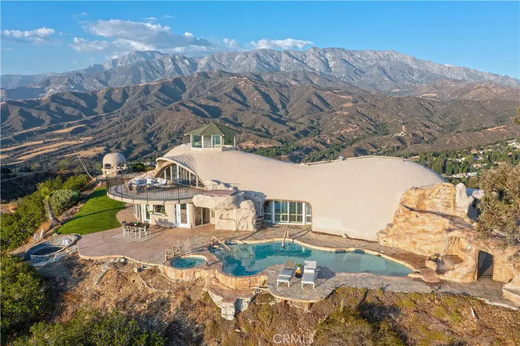 Welcome to Vista Dhome, an extraordinary monolithic dome residence situated atop a breathtaking mountain in Yucaipa, California. Spanning 3,895 square feet of thoughtfully designed living space, this unique home rests on 42 acres of pristine mountain top land at an elevation of 3,800 feet. Here, you’ll experience true 360-degree panoramic views that sweep across the landscapes of Yucaipa, Calimesa, Cherry Valley and the rugged majesty of the surrounding mountains. From your vantage, gaze over the San Bernardino National Forest, Lake Perris, and Lake San Jacinto. On a clear day, your eyes can wander as far as Palm Springs and even the distant outline of Catalina Island. This setting delivers unparalleled vistas and a sense of tranquility that is simply unmatched, ideal for those seeking harmony between contemporary comfort and raw natural beauty. Nestled in the foothills of the San Bernardino Mountains, Vista Dhome offers both peaceful seclusion and convenient access to local amenities. The property is located near scenic parks, hiking and biking trails, shopping centers, and top-rated schools, ensuring a lifestyle that blends relaxation with opportunity. *Monolithic Dome Design: The home’s innovative dome shape provides exceptional energy efficiency, structural integrity, and a striking architectural profile. *Expansive Living Space: The residence features an open-concept floor plan illuminated by natural light, soaring ceilings, and elegant finishes throughout. *Resort-Style Pool and Spa: Enjoy an exotic swimming pool complete with a dramatic waterfall and a hidden grotto, creating an atmosphere of tropical luxury. Relax in the inviting in-ground spa, or retreat to the additional above-ground spa perched on the expansive viewing deck, perfect for soaking in the breathtaking mountain vistas. *Modern Kitchen: The gourmet kitchen is equipped with premium appliances, spacious granite countertops, ample cabinetry, and a central island perfect for both casual meals and entertaining *Outdoor Retreat: With 42 acres to explore, the property includes beautifully landscaped gardens, a welcoming patio, and abundant room for outdoor gatherings or peaceful evenings under the stars. *Energy Efficiency: Dome construction, modern HVAC system, dual-pane windows, Solar for the pool and smart home features combine for impressive comfort and sustainability. Vista Dhome isn’t just a home; it’s a one-of-a-kind mountaintop retreat.