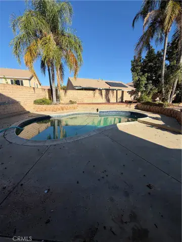 Yucaipa home features family friendly living space with/central heating/cooling and gas fire place, pool, attached garage