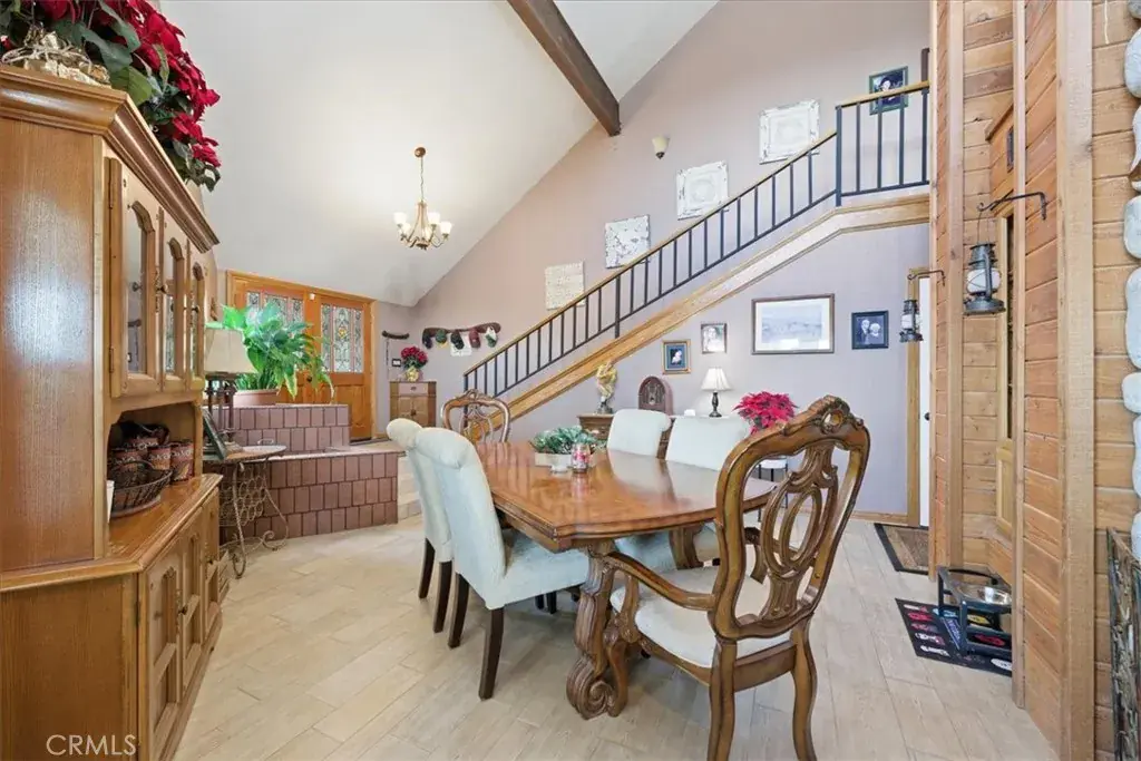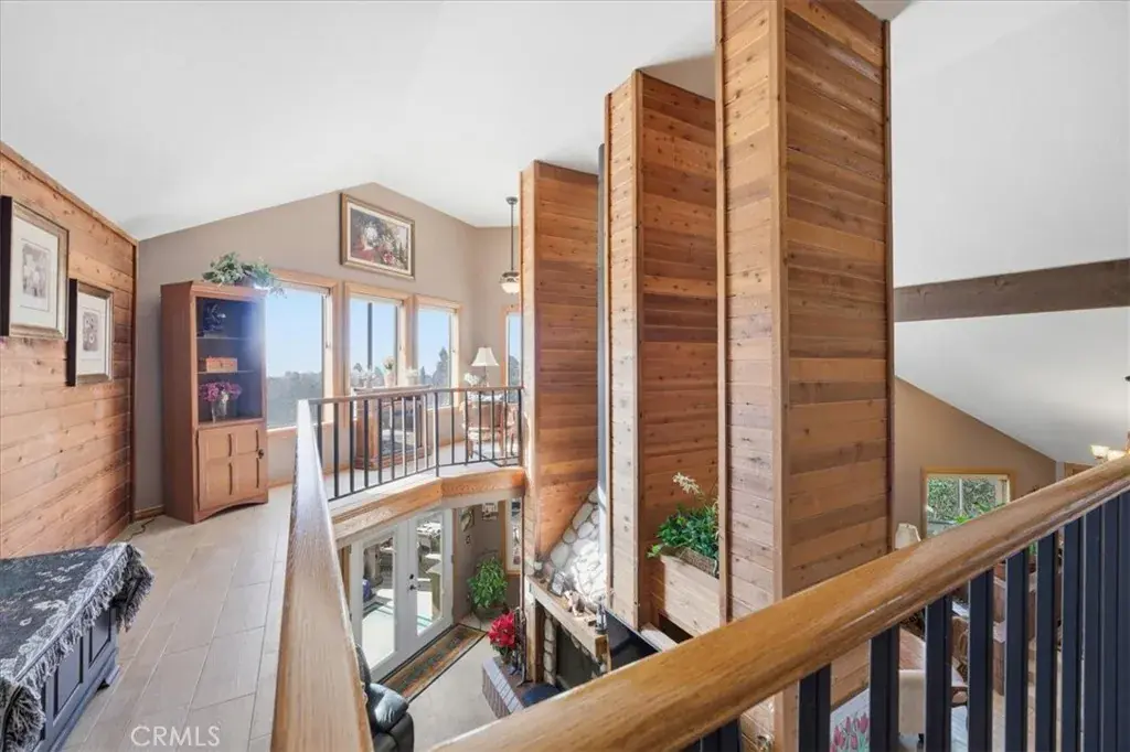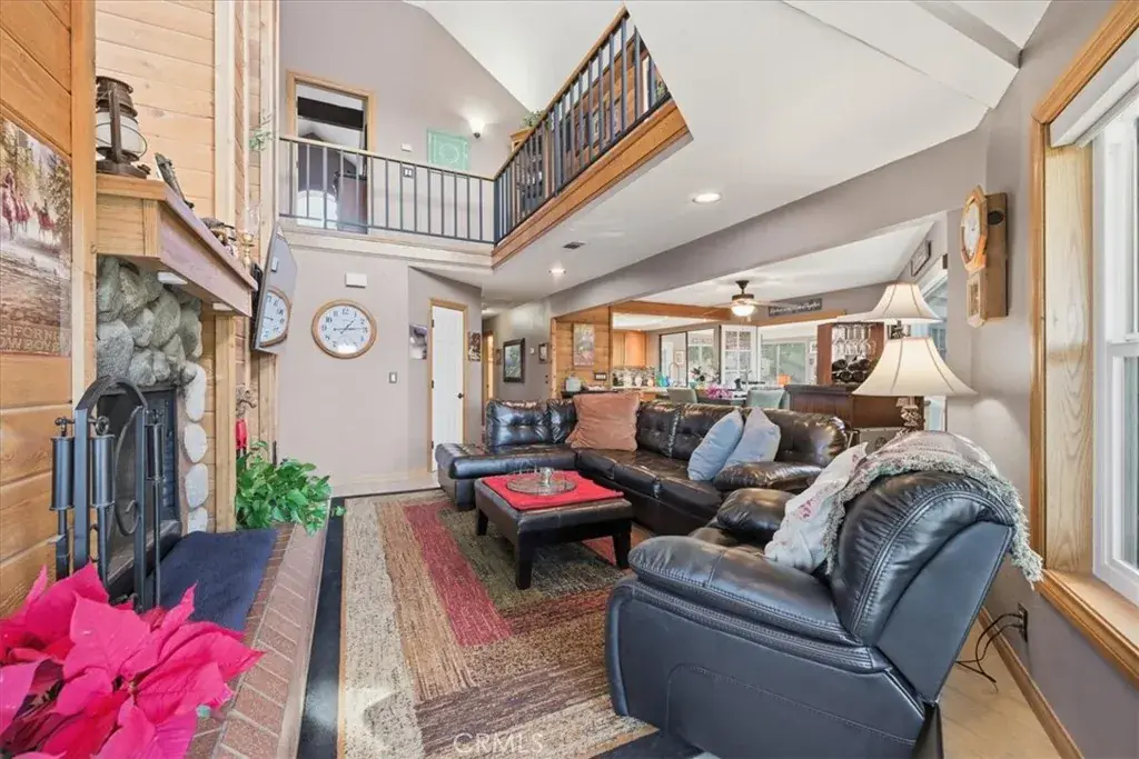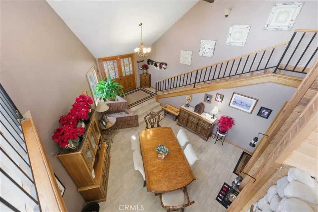 This unique two-story home radiates a cozy mountain vibe with soaring high ceilings that create an open, airy feel. Featuring three bedrooms and two baths, the layout is both comfortable and functional, perfect for everyday living or weekend escapes. The home includes two separate living room areas, offering flexible space for relaxing, entertaining, or gathering with guests. A wraparound deck and along the back side of the home invites you to relax and take in scenic views of surrounding nature—an ideal spot to enjoy stunning sunset skies. The office nook and loft area on the second floor offers inspiring views of the San Bernardino mountains, making work-from-home days feel like a retreat.