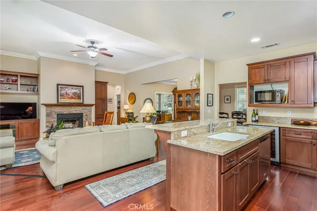 0.8 mi to Wildwood Canyon State Park trailheads • Single-story on 1-acre parcel • Solar to be paid off at close • RV parking • 3-car side-entry garage • Includes 3D tour + floor plan. Built in 2006, this 3 bed / 2 bath, 2,177 sq ft Yucaipa home blends space, storage, and smart layout. High ceilings, dual-pane windows, recessed lighting, ceiling fans, whole-house fan, and abundant natural light anchor the main living areas. Hardwood flooring and crown molding define the living/dining spaces. The island kitchen opens to the family room and features cherry wood cabinetry throughout the home, granite countertops, stainless steel appliances, and a wine refrigerator—ideal for everyday prep and entertaining. A split-bedroom design places the primary suite on one side of the home and the guest bedrooms on the other. All bedrooms include walk-in closets. Baths feature walk-in showers; the primary adds a dual vanity plus soaking tub with separate shower. The laundry room is generously sized with a sink and storage. Outside, the 1-acre lot offers mature landscaping with oak trees, a Tuff Shed, and wide side area for RV parking (no hookups). The setting delivers a rural vibe near city conveniences, groceries, parks, and I-10 access. Solar will be paid off for the next homeowner during the sale, and there is no HOA or Mello-Roos. See 3D walkthrough and floor plan for full details.
