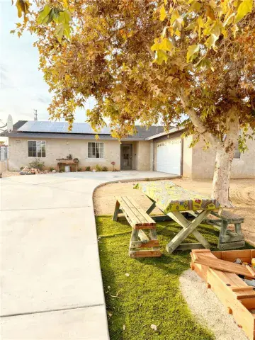 Single-story 3-bedroom, 2-bath home situated on a large 21,000+ sq ft lot in Yucca Valley. Offering approximately 1,207 sq ft of living space, this property features a functional floor plan with ample space for entertaining, attached 2-car garage, and a large well maintained yard. This home is equipped with solar panels, adding long-term energy savings. The expansive lot provides ample space for RV parking, storage, gardening, workshop potential, or future improvements. The rear yard is fully fenced, and front yard includes a mature shade tree and outdoor seating area. This Home presents a great opportunity for buyers looking to find their piece of heaven in a growing desert community. Conveniently located near shopping, dining, and Joshua tree national Park.