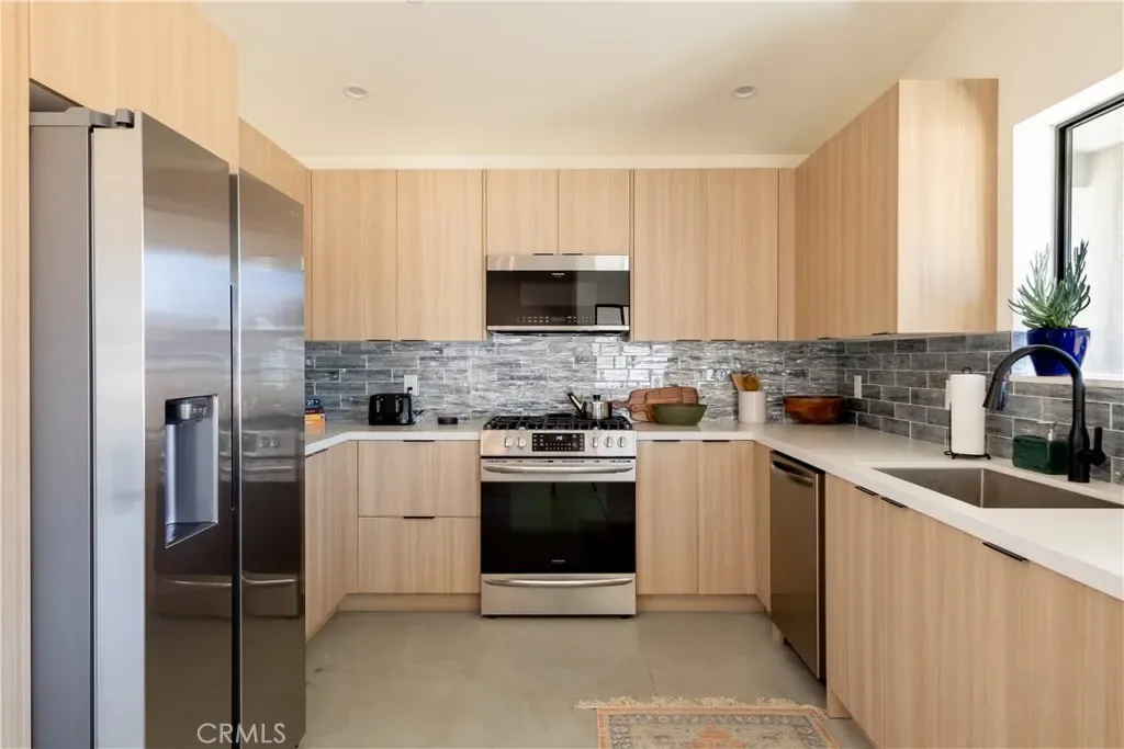 The heart of the home is the expansive kitchen, complete with quartz countertops, stainless steel appliances, and a generous island that flows seamlessly into the spacious living room—ideal for hosting family and friends.
