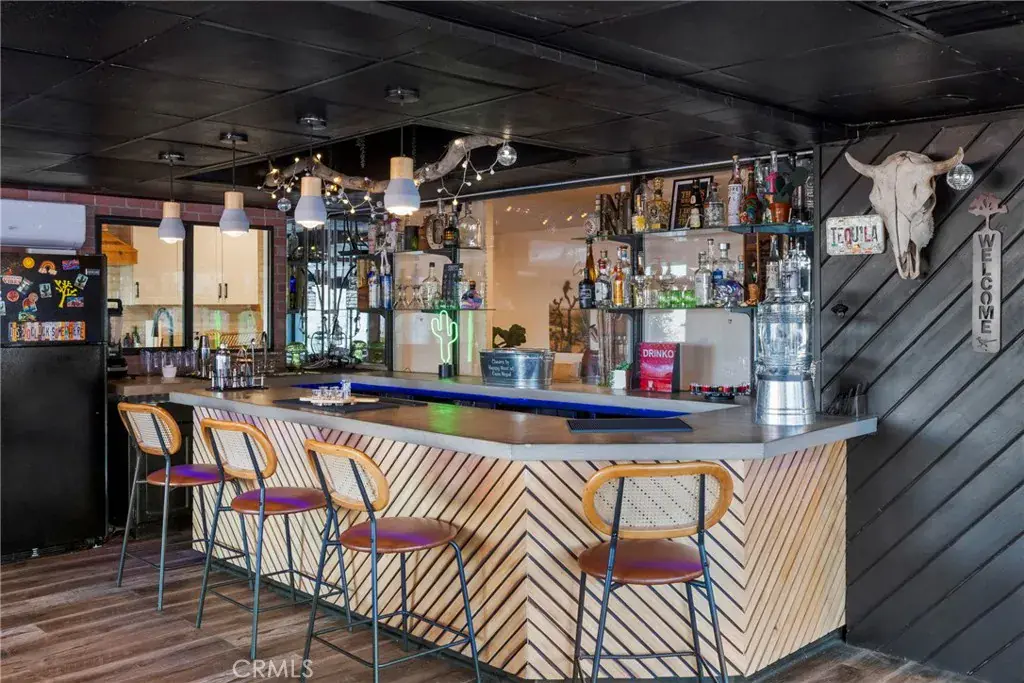 and entertaining guest and enjoying a cocktail from your professional grade bar with surround system and LED lighting. The open yet private backyard is an