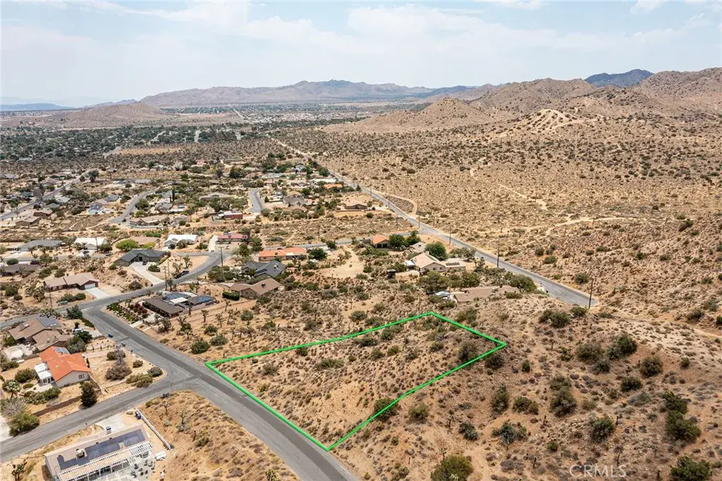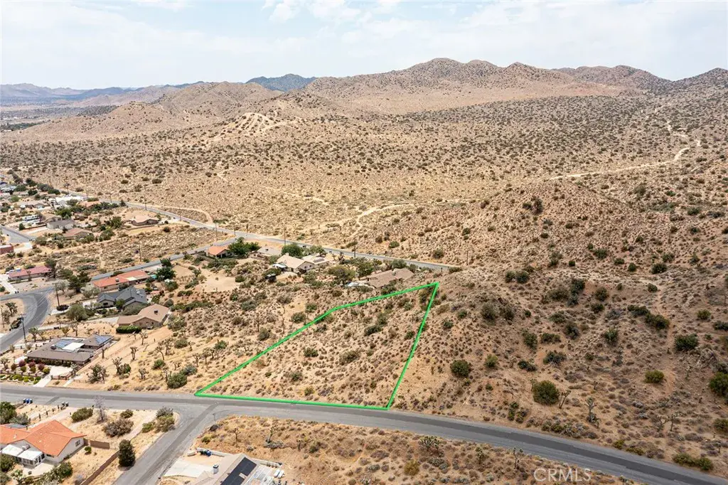 Rare hillside parcel on paved road above town with utilities (water & electric) in street. Great views. Privacy. Seller has plans in place to develop property that buyer would need to submit to City for approval. Located in desirable Juniper Terrace neighborhood known for its privacy. No through traffic on this parcel, providing yet more privacy. Property has already been assigned an official street address, the first step in the permitting process for building. This elevated location sits on the edge of town. Yucca Valley is often 10-to-15 degrees cooler temperatures than Palm Springs area. Great buy to develop or hold in this up-and-coming community. Please note that green lines demarcating boundaries in pictures are approximate. APN: 0585-532-16