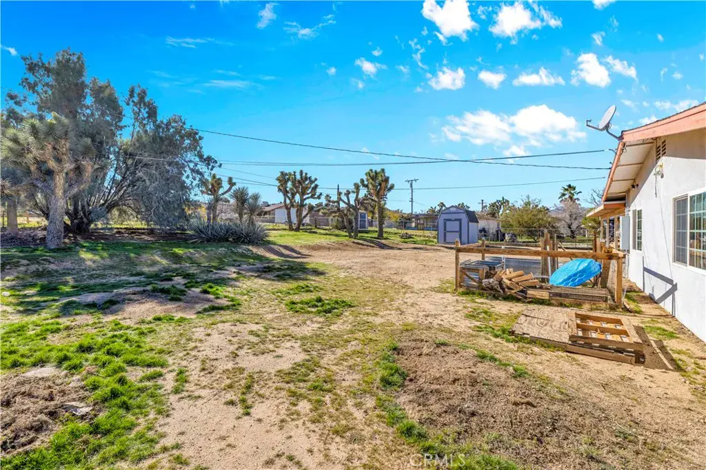 Affordable 4 Bedroom, 2 Bathroom Home with Potential FIFTH BEDROOM on Nearly Half an Acre in Central Yucca Valley! This spacious and well-maintained home offers unbeatable value with 4 bedrooms, 2 bathrooms, plus an additional room with a closet that can easily function as a FIFTH BEDROOM. Located in the heart of Yucca Valley, this property sits on just under a half-acre lot and features a fully fenced backyard with a convenient drive-thru gate—perfect for RV or toy storage. An oversized concrete driveway provides ample off-street parking. Inside, the home boasts a large living room with a cozy wood-burning fireplace, beautiful tile flooring throughout the main living spaces, and luxury vinyl plank in the bedrooms. The kitchen has been fully remodeled and features custom finishes including a stunning countertop-to-ceiling backsplash, stainless steel appliances, ample cabinetry, and generous counter space. The spacious primary bedroom offers dual closets and privacy, being located far from the other bedrooms. Both bathrooms have been updated with beautiful new tile and finishes. All secondary bedrooms are generously sized, and the home offers additional hallway and linen closet storage. This property is equipped with dual cooling, offering both central HVAC and a ducted evaporative cooler to help you stay comfortable and energy-efficient year-round. There is also an affordable solar power purchase program, making the electricity more affordable. This home even features an attached 2 car garage with laundry hookups. Out back, you’ll find a large covered patio and a flat, usable yard that’s perfect for entertaining or relaxing. There’s also a Tuff Shed for added storage. Located close to schools, restaurants, and shopping, this home is move-in ready and offers size, functionality, and value. Homes with this square footage, bedroom count, and price point are hard to come by—schedule your showing today before it’s gone!