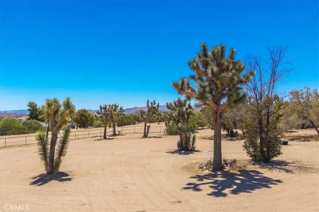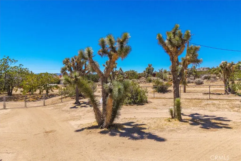 Gorgeous well maintained home on a large, very nice lot makes 56810 Chipmonk an exceptional value. It does not take much imagination to see just what a beautiful home and great layout is presented for you. With soaring cathedral ceilings, bountiful windows capturing every bit of light, a rustic brick framed wood burning fireplace, a lot of storage and beautifully built in features like the full wall bookcases in the living room the attraction will make you love this location. The location is in the very desirable Rancho Mesa community and is a mostly fenced lot boasting over 2 acres. The well appointed kitchen features granite countertops, a dishwasher and built in microwave and nice views from the window. The primary bedroom is spacious and has an ensuite full bathroom with dual vanity sinks and a bonus room built off the back of the primary bedroom that would make for a great art studio, sunroom, reading room or any number of possibilities. The well manicured backyard is fully fenced and adorned with mature joshua trees and other desert variety. The location is rural and peaceful and is close to all the high desert has to offer. Just down the street from some well known locals like La Copine restaurant and the Giant Rock Meeting room featuring good food and live entertainment. Less than 15 minutes from the western movie set turned chic town Pioneertown and the renowned Pappy and Harriet’s Pioneertown Palace. Less than a 15 minute drive to downtown Joshua Tree and it’s eclectic shops and restaurants and the main entrance of Joshua Tree National Park. Less than 15 minutes to the healing Integratron. A 45 minute drive to Palm Springs, a little over an hour to Big Bear Lake. This makes for a nice jump off point to many attractions and locations. Nice sunsets and sunrises and wondrous star filled night skies await you here. Come and make this beautiful home yours!