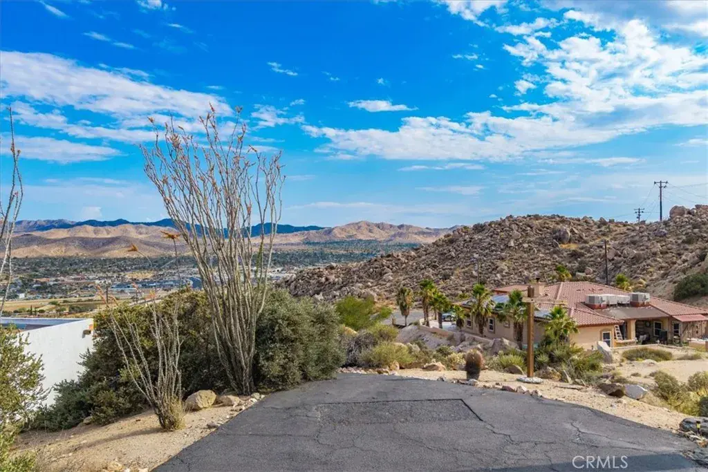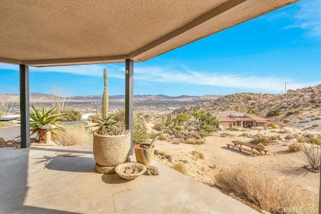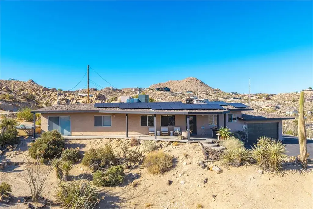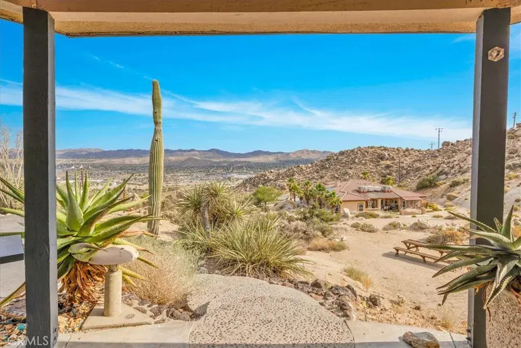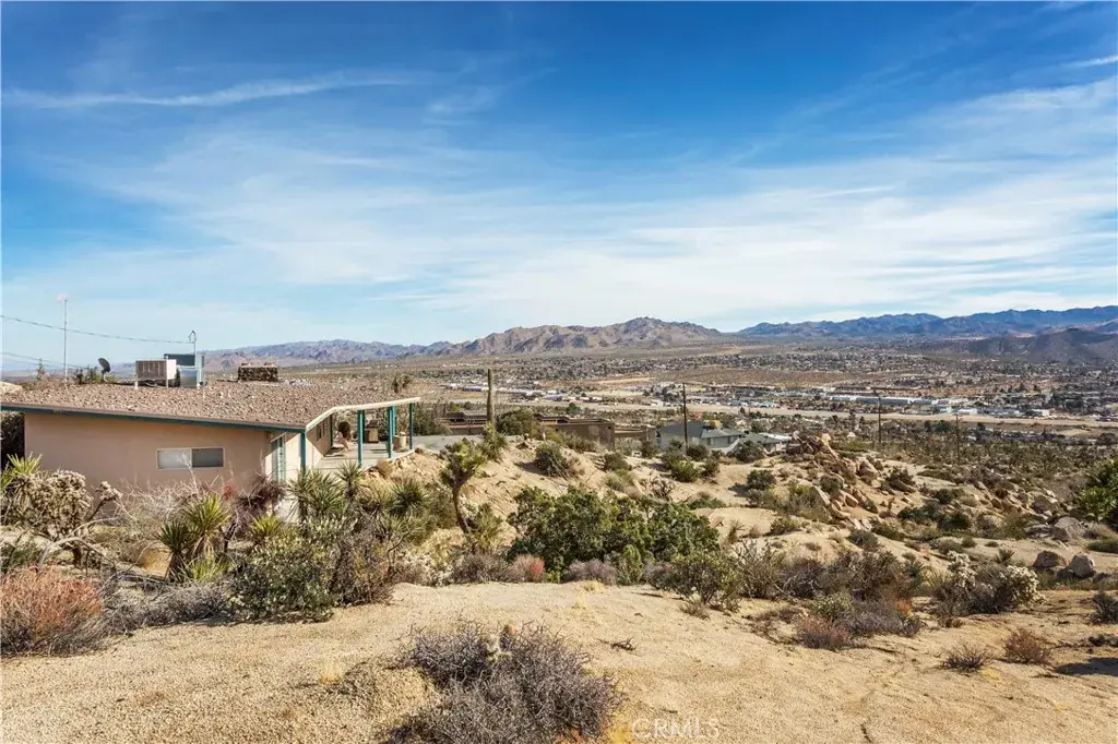 Tucked high in the coveted Western Hills Estates of Yucca Valley, this 2 bedroom, 1 bath gem offers privacy, perched among boulders with sweeping panoramic views and PAID/OWNED SOLAR. A long, private driveway leads to a secluded desert sanctuary where nature, character, and comfort come together beautifully. Step inside to find a home full of vintage charm—original architectural details, warm charismatic finishes, and mid-century desert vibes that are complemented by thoughtful modern updates throughout including a well though out, and more than generous walk in closet. The home features windows that frame the surrounding rock formations and expansive valley views and native vegetation, creating a connection between indoors and out. Outside, enjoy the magic of the high desert from a spacious patio ideal for entertaining, relaxing, or stargazing in total privacy. Whether you’re seeking a peaceful full-time residence, weekend escape, or a unique vacation rental, this one-of-a-kind property offers the perfect blend of retro charm, modern ease, and unmatched natural beauty. Just minutes from the heart of Yucca Valley and a short drive to Joshua Tree National Park, yet you feel a world away.