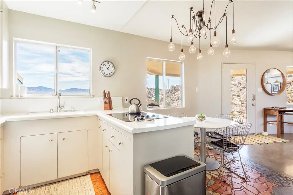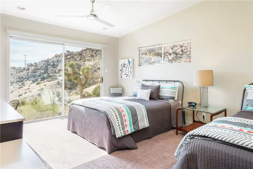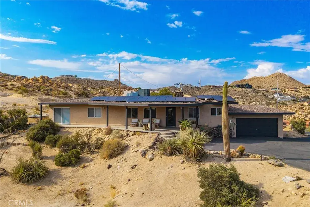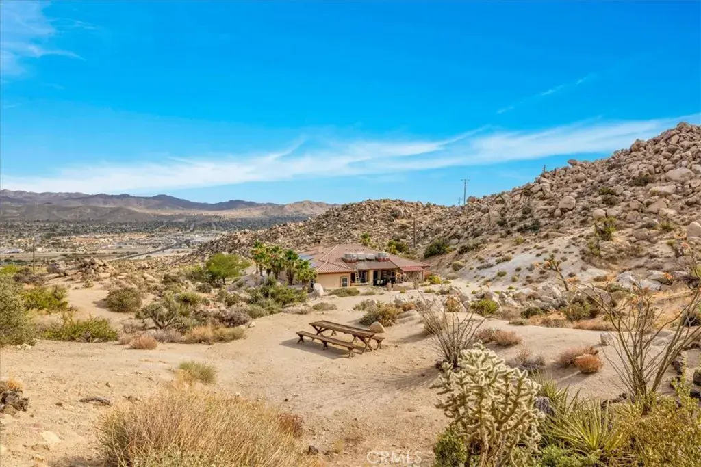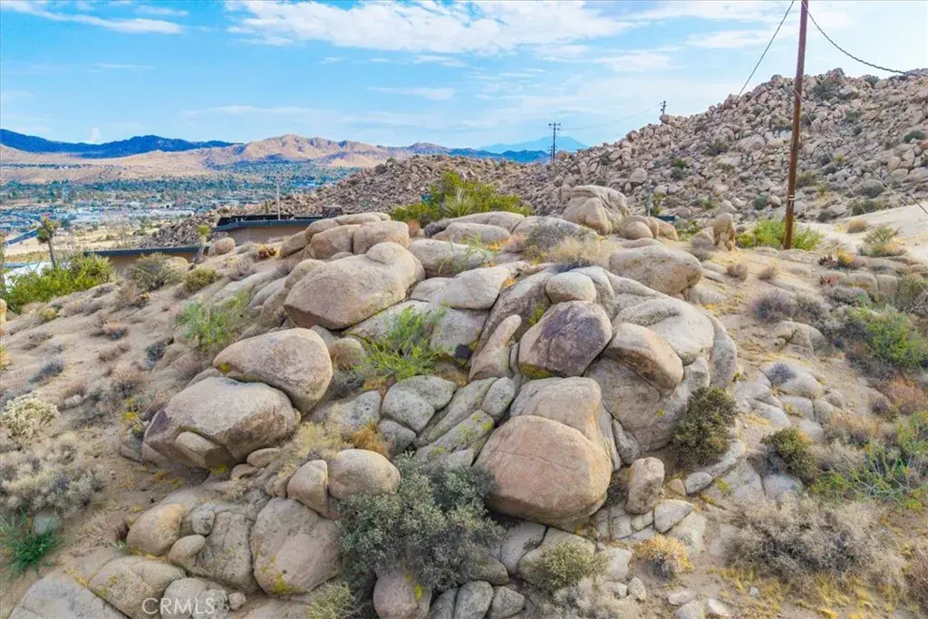 Tucked high in the coveted Western Hills Estates of Yucca Valley, this 2 bedroom, 1 bath gem offers privacy, perched among boulders with sweeping panoramic views and PAID/OWNED SOLAR. A long, private driveway leads to a secluded desert sanctuary where nature, character, and comfort come together beautifully. Step inside to find a home full of vintage charm—original architectural details, warm charismatic finishes, and mid-century desert vibes that are complemented by thoughtful modern updates throughout including a well though out, and more than generous walk in closet. The home features windows that frame the surrounding rock formations and expansive valley views and native vegetation, creating a connection between indoors and out. Outside, enjoy the magic of the high desert from a spacious patio ideal for entertaining, relaxing, or stargazing in total privacy. Whether you’re seeking a peaceful full-time residence, weekend escape, or a unique vacation rental, this one-of-a-kind property offers the perfect blend of retro charm, modern ease, and unmatched natural beauty. Just minutes from the heart of Yucca Valley and a short drive to Joshua Tree National Park, yet you feel a world away.