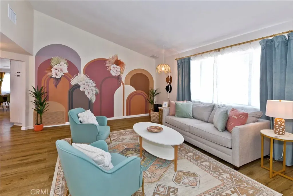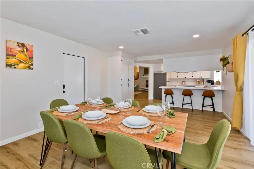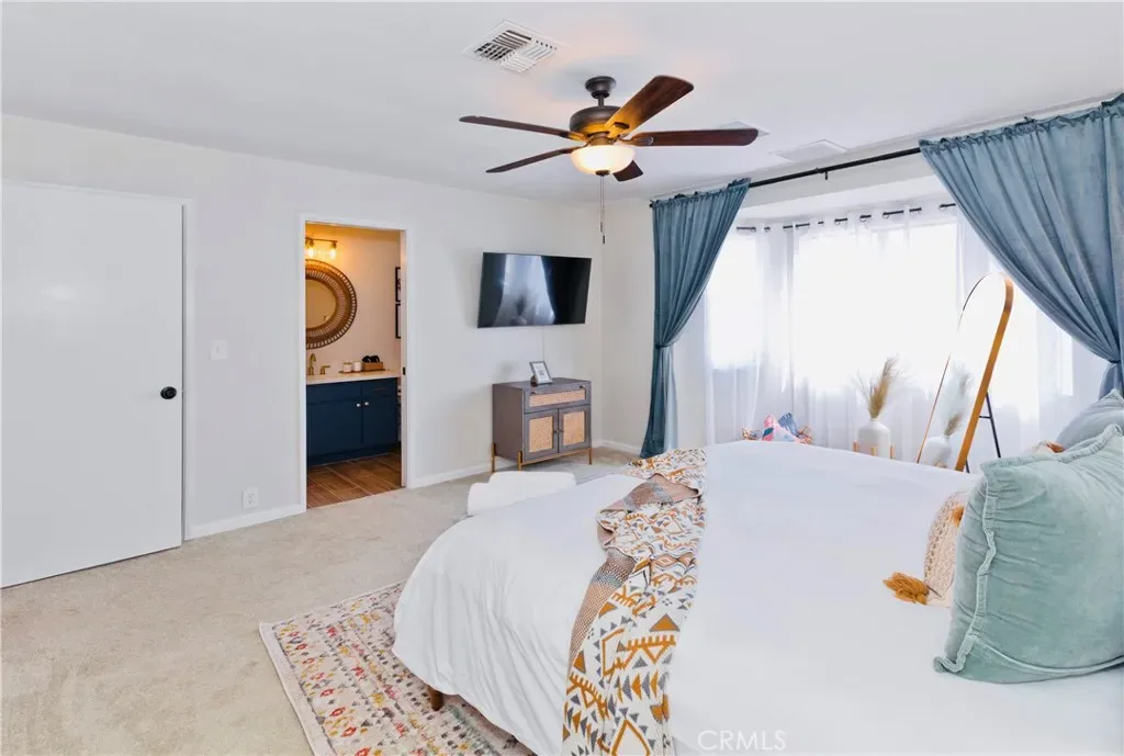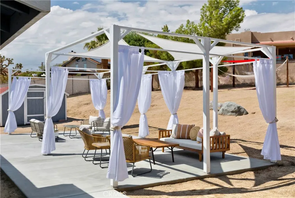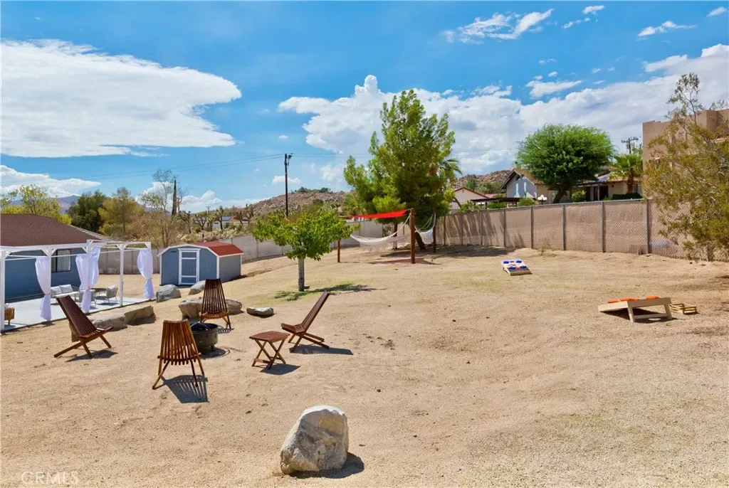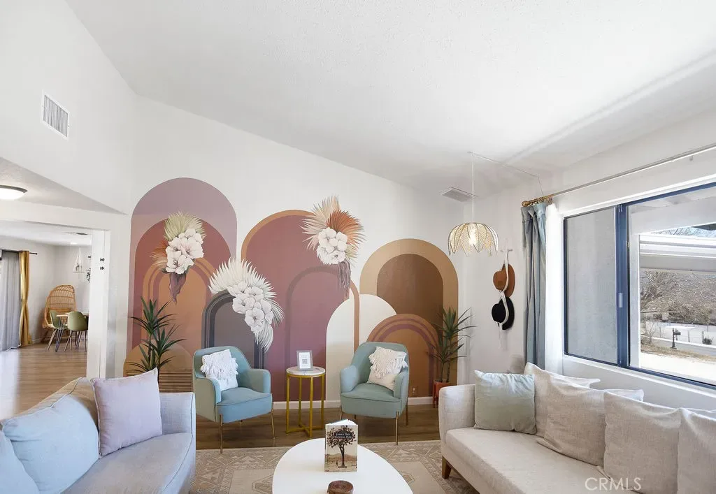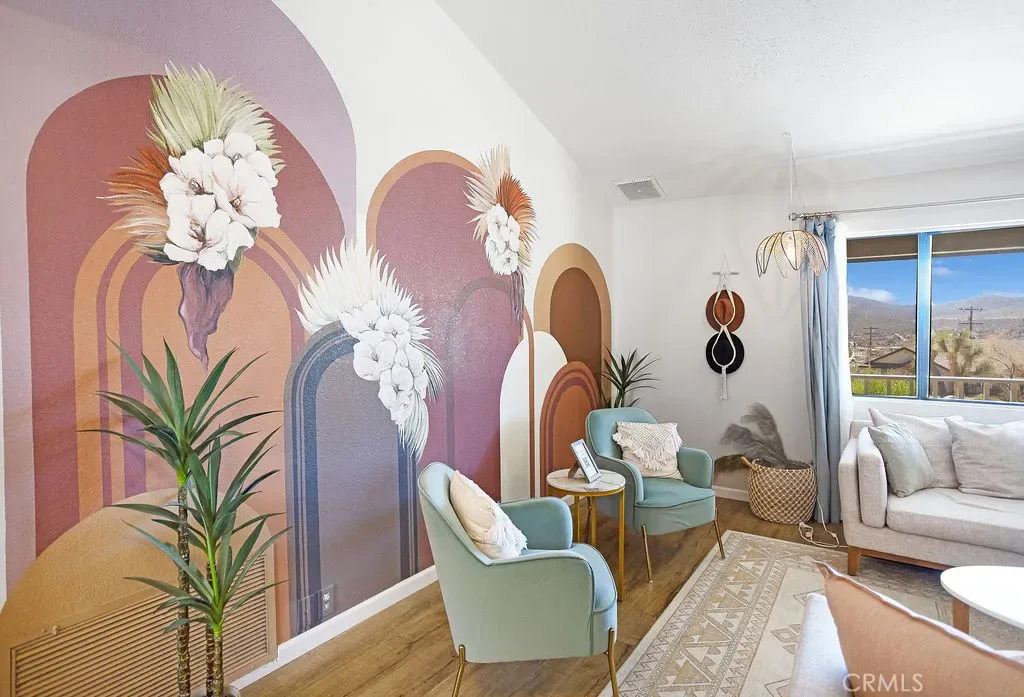 Price Reduced! Gorgeous 3 Bedroom, 2 Bathroom Home with Views in One of the Most Coveted Areas of the Hi-Desert. Located on a cul-de-sac in the highly sought-after Western Hills Estates area of Yucca Valley and renovated with beautiful finishes, this wonderful home is sure to please. As you drive through the neighborhood, you’ll realize why this area is so popular, passing by well-cared-for homes surrounded by stunning views of boulders and mountains in the background. Pulling into the ½-acre lot, you’ll notice a chic blue façade with white trim, a double garage door, and mature Joshua trees. A covered patio welcomes you as you stop to admire the phenomenal views of the cityscapes along with the majestic mountains. Stepping through the front door, you’ll find a character-driven floor plan featuring a stunning hand-painted mural, stylish wood laminate flooring, a tasteful color scheme, decorative shelving accents, and a beautiful fireplace that ties it all together. Designed with entertaining in mind, the upgraded and fully equipped kitchen is spacious, inviting, and stylish. It comes equipped with quartz countertops, tasteful kitchen cabinets, and stainless steel oven and dishwasher! Just off the kitchen is the large dining room, which could easily be utilized as a den. Each guest bedroom has plenty of space, and the guest bath features wood tile flooring, a beautiful vanity, a full bathtub/shower, and a stylish mirror! Entering the large primary bedroom, you’ll find a walk-in closet, a bay window, and a private bathroom featuring wood tile flooring, a chic vanity, a stylish mirror, and a full bathtub/shower! Can it get any better? Yes! The backyard has been transformed into a private sanctuary outfitted with privacy fencing, a covered patio, a NEW 20×30 cabana, and a NEW jacuzzi, making this space the perfect spot to host gatherings or enjoy all to yourself! Additional features include an upgraded electrical panel to 200A, a new 4-ton electric HVAC system, dual-pane windows, and more! Call today before this one is gone!