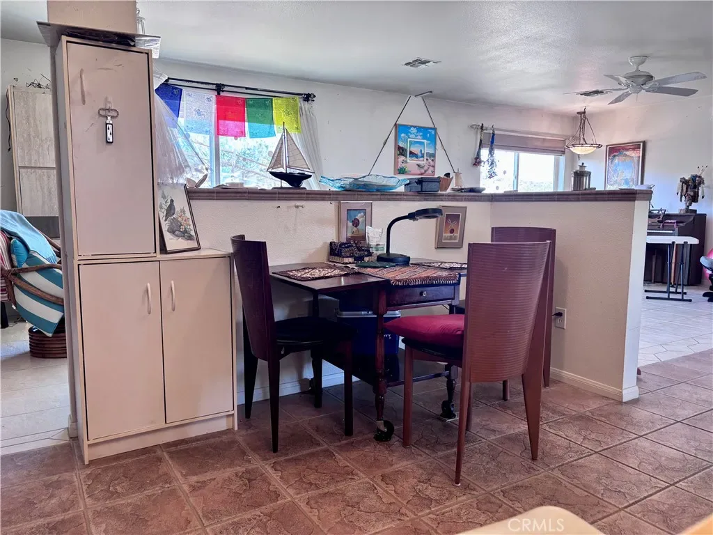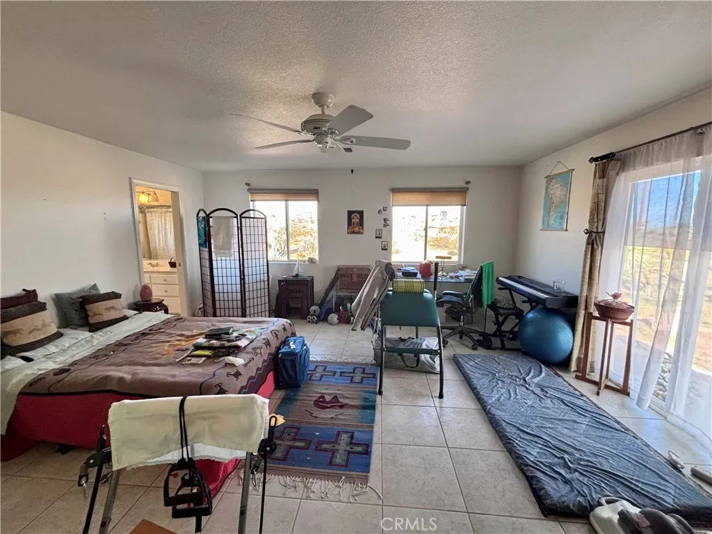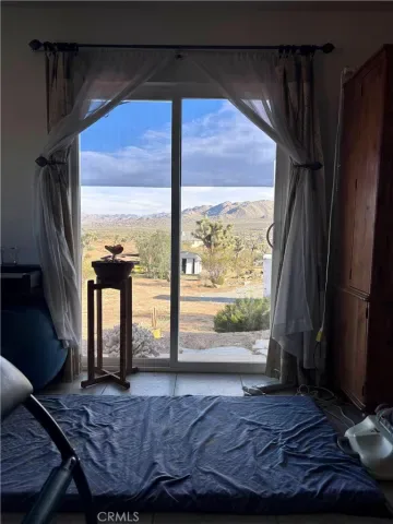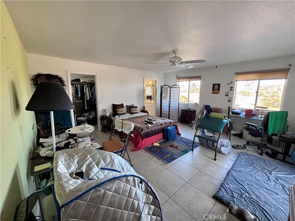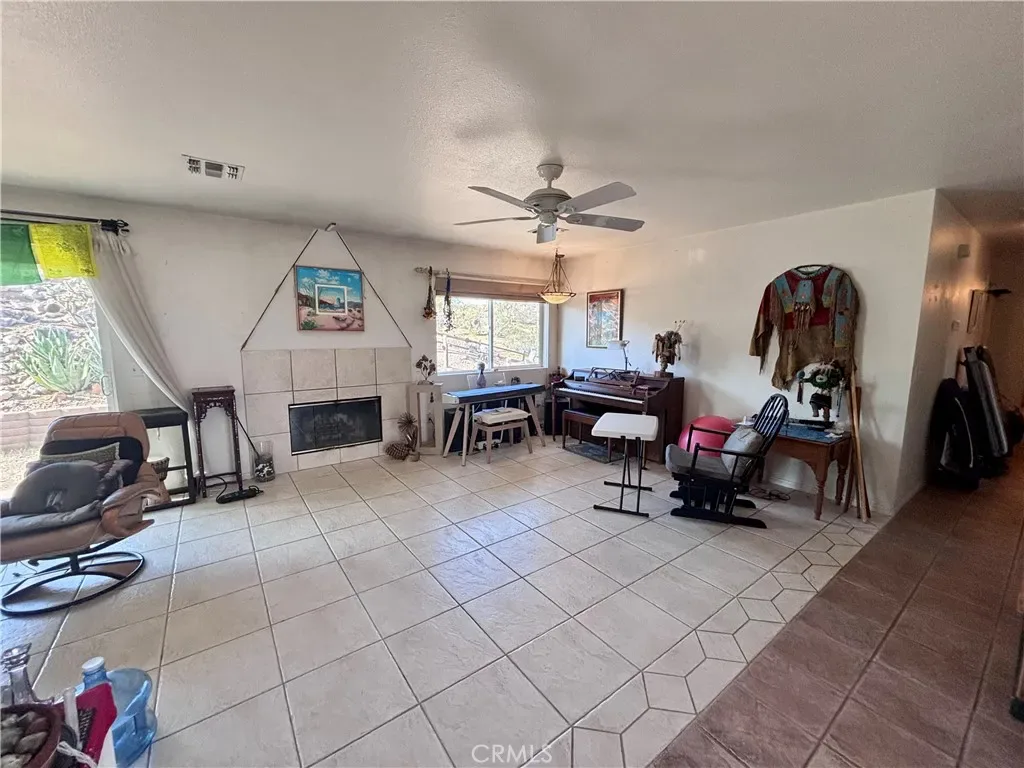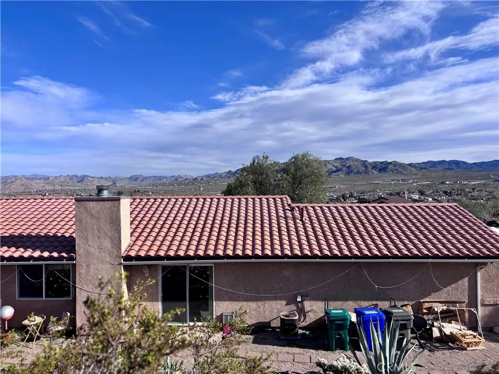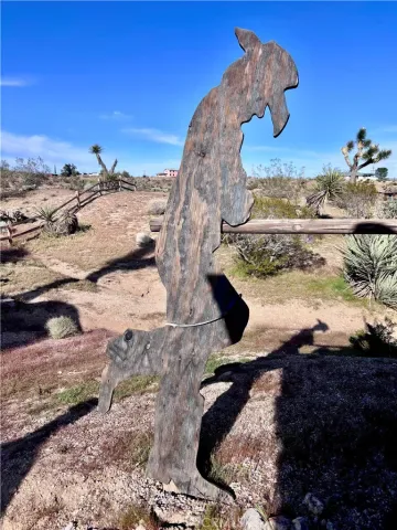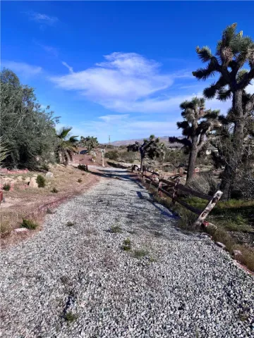 Discover a captivating city lights view from this 4-bedroom, 3-bath home nestled in a tranquil cul-de-sac freshly paved, boasting a wilderness panorama view. This private oasis, was built in 2004, spans .85 acres . The entrance is nothing short of dramatic, providing the perfect perch to savor both sunrises and sunsets. Featuring a tiled roof and cool tiled floors throughout, the home exudes a refreshing ambiance. The spacious kitchen offers a scenic backdrop, complete with double ovens. A fireplace graces the living room, while ceiling fans adorn every room. The dining room, with glass sliders leading to the rear yard, presents a dramatic view for your dining pleasure. The expansive master suite includes a generous walk-in closet and glass sliders, inviting in the cool morning and evening breeze. A second master suite, with its own full bath, also opens up to the rear yard through glass sliders. The oversized 2-car garage is impeccably finished with epoxy floors, complemented by a concrete driveway. A green house in the rear garden adds to the property’s charm. With numerous amenities to offer, this one-of-a-kind residence is a rare find. Don’t miss out on the unparalleled location and breathtaking views! Explore the captivating beauty of Joshua Tree National Park and indulge in a delightful shopping experience in the charming town of Yucca Valley. Immerse yourself in the stunning landscapes of Joshua Tree National Park, located in close proximity.