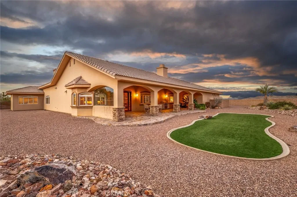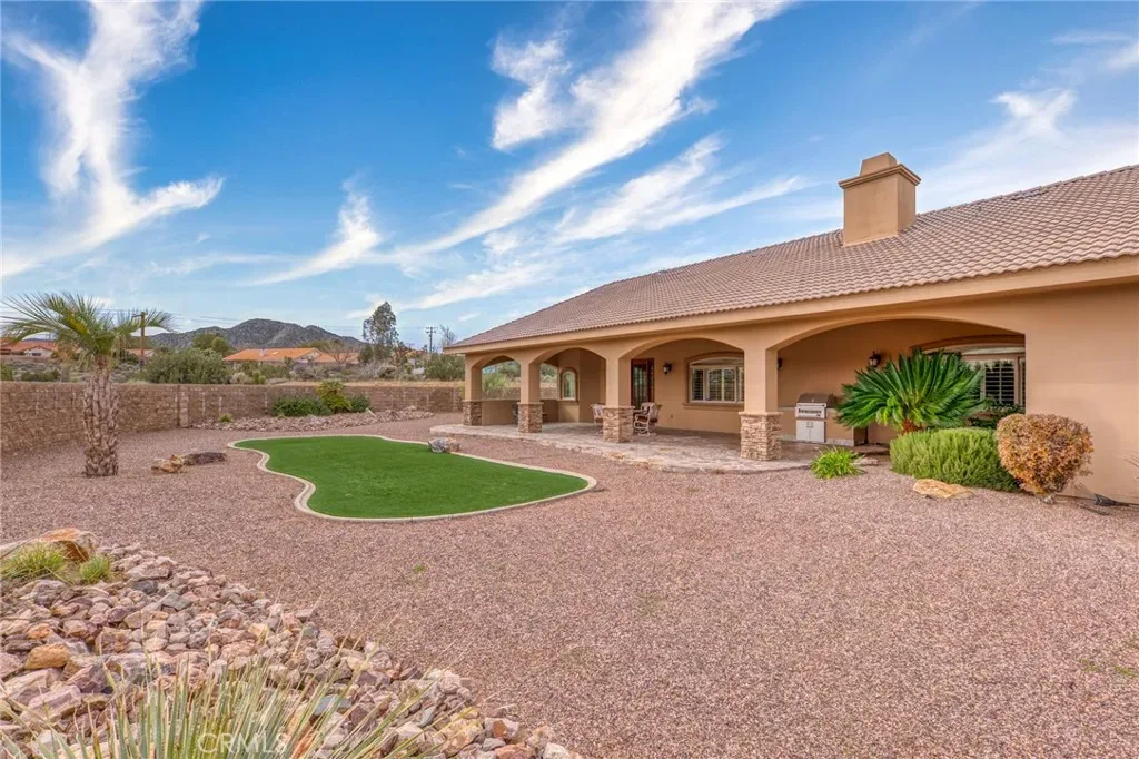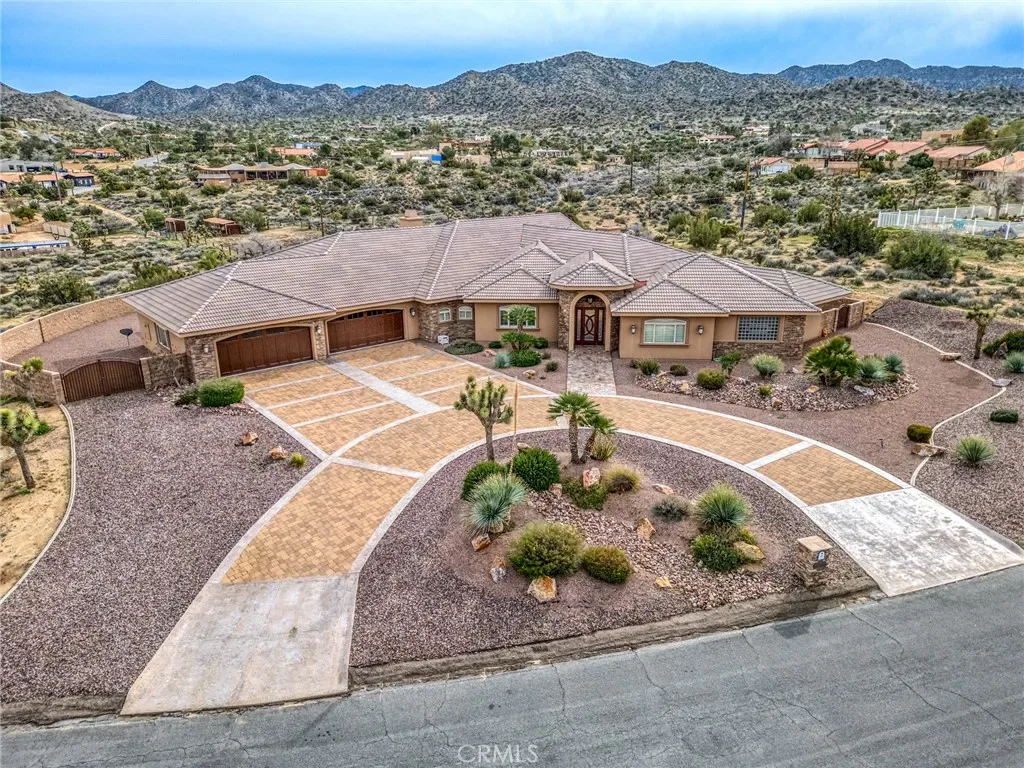 Step back into classic luxury with this expansive 3-bedroom, 2.5-bath estate. This single owner home was built to the highest standards, with no square inch being overlooked. From the vaulted wood 13′ ceiling, to the extensive rock landscaping, to say that this home is one of the finest finished homes in the area is being modest. The residence features a split floorplan with two luxurious primary suites as well as a versatile den/office/third bedroom. Interior photos are unable to capture the oversized scale of the interior spaces. The footprint boasts an impressive 5,200 sq ft of living space, only to be paired with an oversized 4 car 1,600 sq garage, and topped off with an 870 sq ft patio. Total ‘under-roof’ square footage pushes past 7,700 sq ft. The 2.78 acre lot drops dramitacally at the rear property line, ensuring ultimate privacy and views will be a permanent characteristic. With its rare combination of size, oppulant finishes, and scenic beauty, this property offers a unique opportunity to own a standout home in the heart of the high desert. Bring your most discerning buyers!