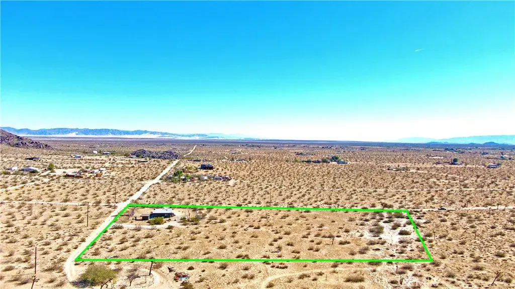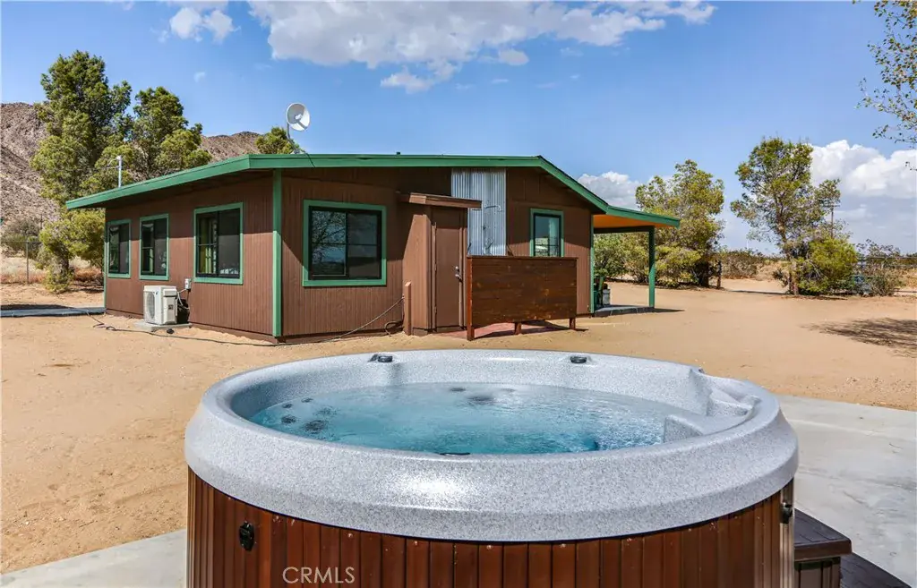 Welcome to **Pine + Mountain**, a beautifully reimagined 1950s cabin designed by HGTV star **Doug Wiand**. This 2-bedroom, 1-bath home combines vintage charm with modern comfort, featuring a warm and inviting country cabin feel throughout. Inside, you’ll find a cozy gas fireplace, gorgeous stamped concrete floors that extend outside to the walkway. Prepare meals in a fully remodeled kitchen with stainless steel appliances, concrete countertops, and high-end tile finishes. The elegant clawfoot tub adds a touch of classic character to the bathroom while a skylight lets in beautiful natural light. Every detail reflects exceptional craftsmanship. Step outside to enjoy the best of desert living on five private acres with views in every direction, at the foot of Goat Mountain. The Starry Nights are amazing! Relax in the Jacuzzi hot tub, gather around the fire pit, rinse off in the double outdoor shower, or dine under the large covered patio. This home offers a peaceful retreat with designer style, ideal as a full-time residence, weekend escape, or short-term rental. With its proximity to Giant Rock, the Integretron, and King of The Hammers makes the location ideal.