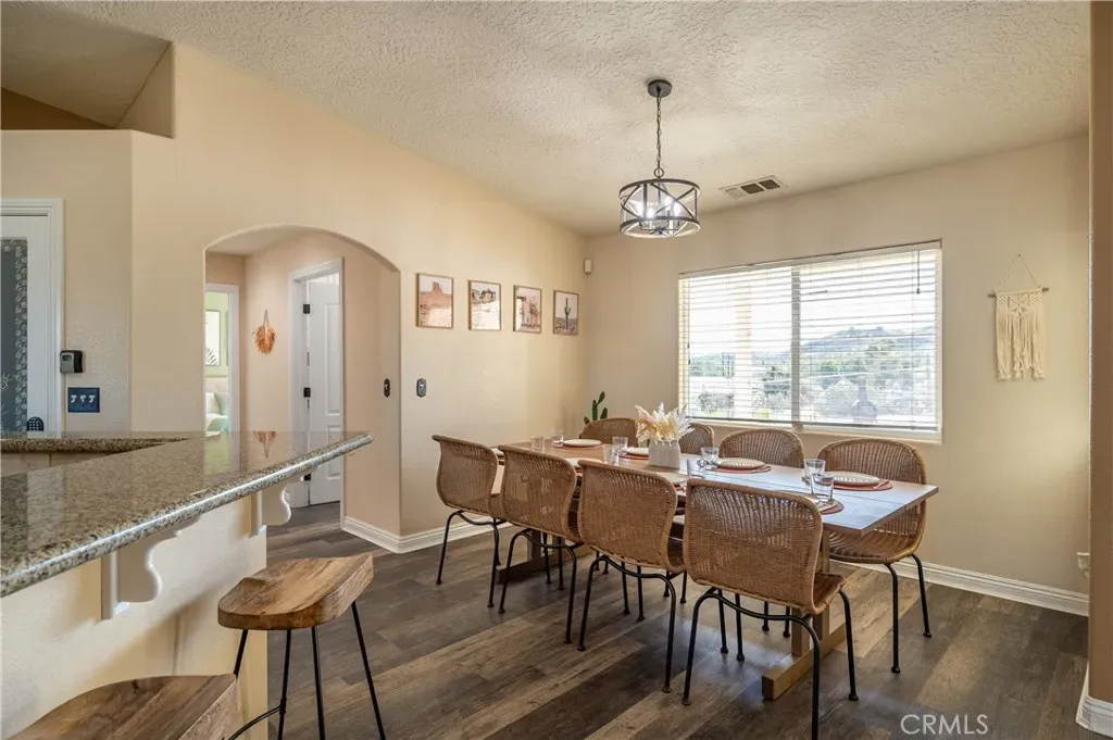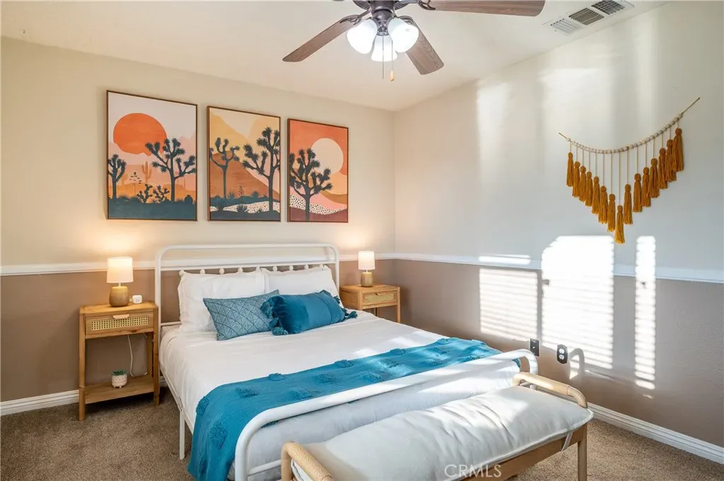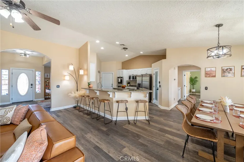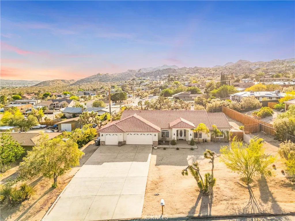 This beautifully updated home is located in the prime area and sits on a large lot. It offers stunning mountain views from the front yard and desert plants in the back creating a serene and picturesque atmosphere. The open floor plan allows for abundant natural light, while the recessed lights and combination of luxury vinyl and carpet add a touch of elegance and warmth throughout the home. The family room features a cozy fireplace. The updated kitchen boasts granite countertops and stainless-steel appliances (including a double oven), creating a sleek and modern look. The large master suite includes a walk-in closet, double vanity, shower, and soaking tub, providing a luxurious and relaxing space. Additionally, there are large guest rooms and a guest bathroom to accommodate visitors. The front yard is spacious and ideal for enjoying beautiful sunrise and stargazing. There is a covered patio and a spacious backyard, making it perfect for entertaining guests. The backyard offers the option for an above ground pool and hot tub, providing the perfect setting for relaxation and recreation. Sunsets from the backyard are beautiful. This home truly offers a combination of comfort, style, and stunning surroundings. For added convenience, the furnishings and houseware can be included in the sale if desired, making it a turn-key option for either a beautiful residence or a vacation rental.