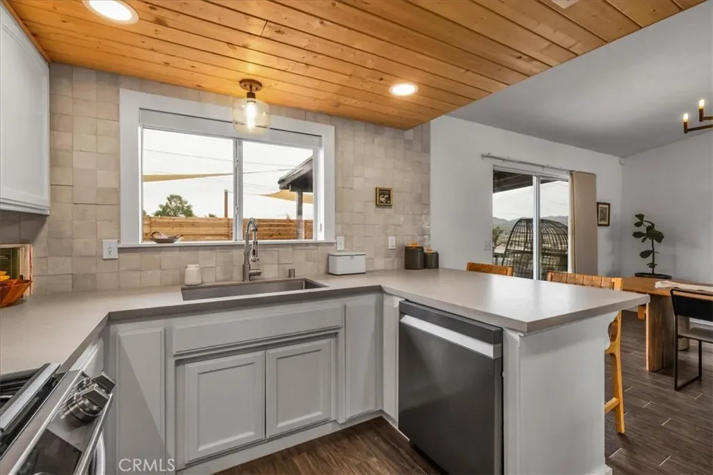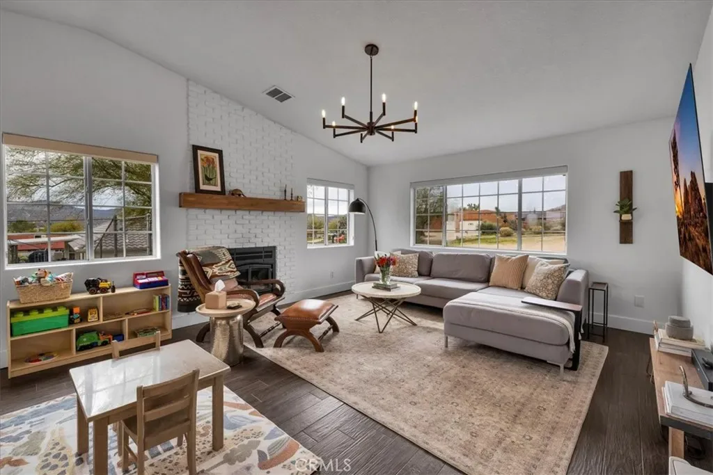 Located in Yucca Valley’s Western Hills neighborhood, this 3 bedroom, 2 bath home offers 1,522 square feet of thoughtfully designed living space on a 16,250 square foot lot. Built in 2003, the home features high ceilings, recessed lighting, tile wood-look flooring throughout, and an easy single-level layout connecting the living, dining, and kitchen areas.
