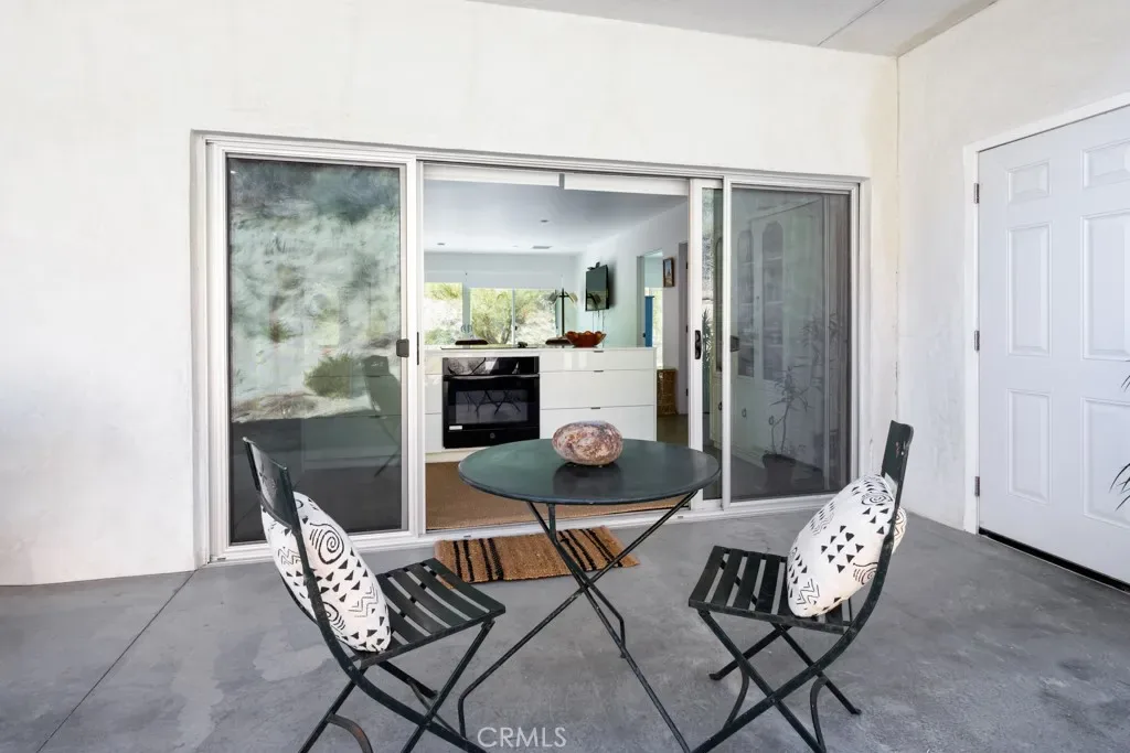 Stepping back outside, you find the perfect spot to host barbecues and get-togethers or simply relax at the end of the day while taking in the phenomenal views. Enjoy bright blue skies above the vast valley during the day, and at night, watch the city lights twinkle against the backdrop of the Joshua Tree National Park. Bordering the property are 25 acres of protected UC and BLM land, allowing you to hike right from your front door into the untouched desert.