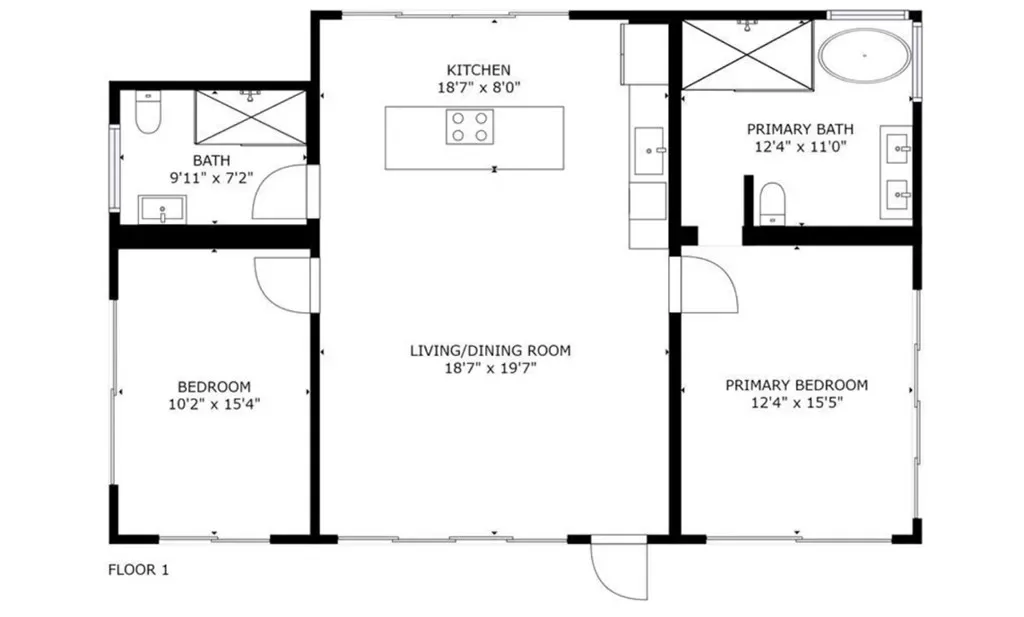Stepping through the front door, you will find a modern open floor plan with concrete flooring, recessed lighting, and an abundance of windows that bring in plenty of natural light, creating an open, airy feeling that flows throughout the home. Designed with entertaining in mind, the exquisite kitchen opens up to the rest of the living area, allowing you to prepare your favorite meals while still being part of the action. Equipped with counter seating, a stainless steel chef’s sink, quartz countertops, and all necessary appliances, it’s the perfect spot to prepare your culinary delights.