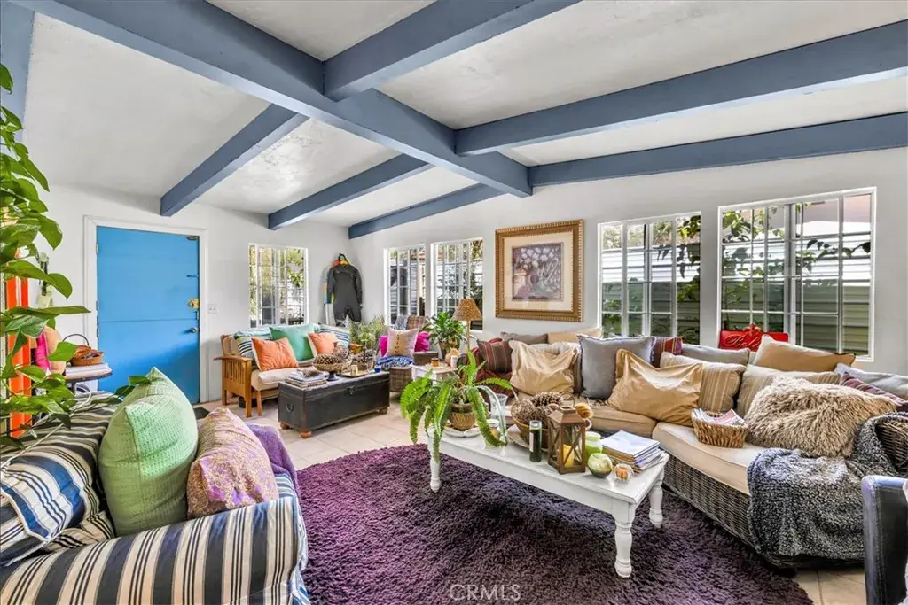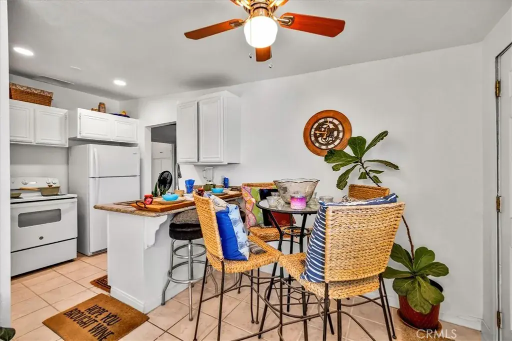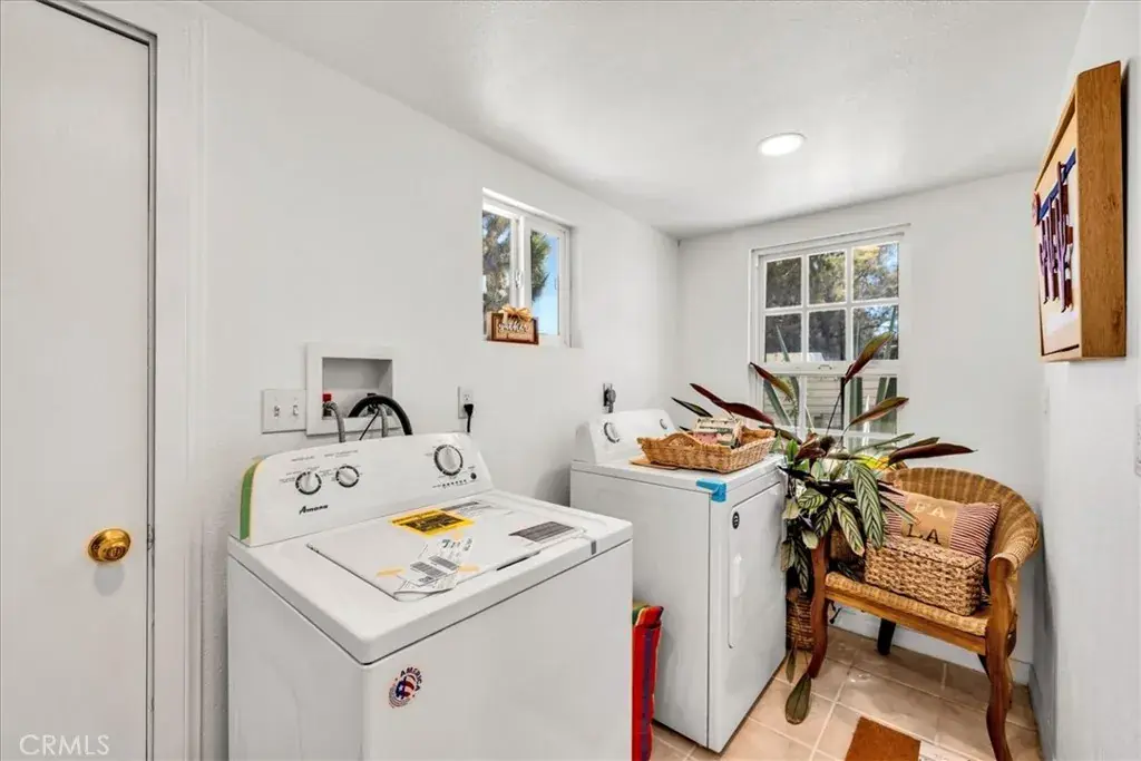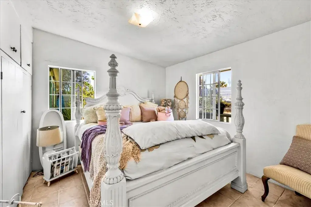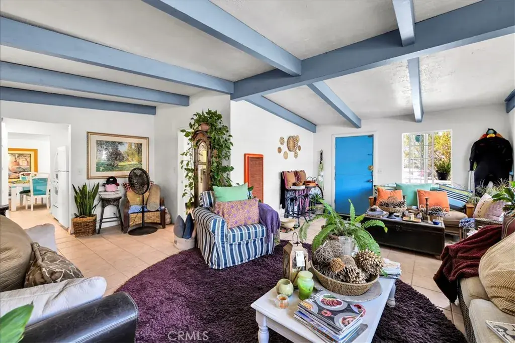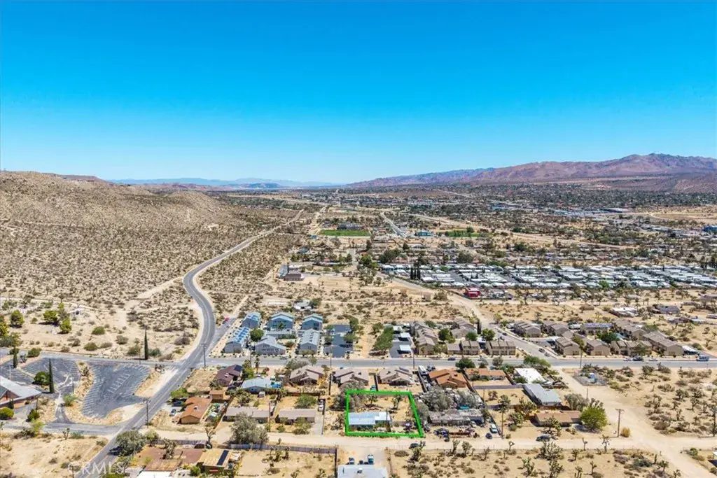This charming 2 bedroom, 1 bath home on 1/3 acre in north downtown Yucca Valley combines comfort, style, and privacy with a convenient location. Beautiful landscaping and mountain views welcome you, along with a secure outdoor parking area and privacy fencing in both the front and backyard. Covered patios at the front and back of the home provide inviting spaces to relax outdoors in your own private oasis. Inside, the living room is spacious with high beamed ceilings, tile flooring throughout, and new windows that fill the space with light. The kitchen is nicely appointed and features an informal dining area with sliding glass doors to the backyard, plus a separate formal dining room for added flexibility. The bathroom is generously sized and includes a tub/shower combo. The first bedroom offers built-in storage and plenty of space, while the second bedroom is oversized with abundant natural light and large closet. A sizable bonus room provides even more versatility for work, hobbies, or guest use. Furniture is included, making this property move-in ready. With its thoughtful updates, spacious design, and excellent outdoor living features, this home is a wonderful opportunity in a desirable Yucca Valley neighborhood.