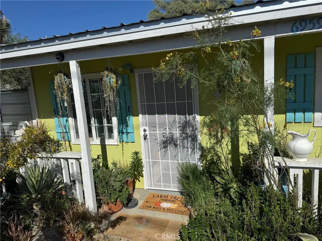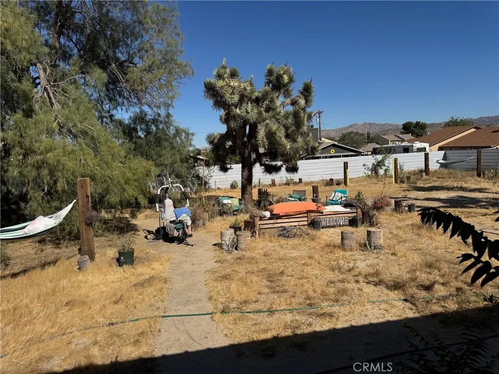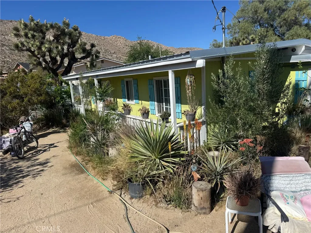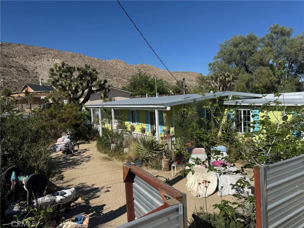 This inviting 2-bedroom, 1-bath residence sits on a generous 1/3-acre lot in the desirable north downtown area of Yucca Valley, offering a blend of comfort, functionality, and seclusion. The property is framed by attractive landscaping and scenic mountain views, with privacy fencing enclosing both the front and rear yards. A gated outdoor parking area adds convenience and security, while covered patios at the front and back create perfect spots to unwind and enjoy the surroundings.