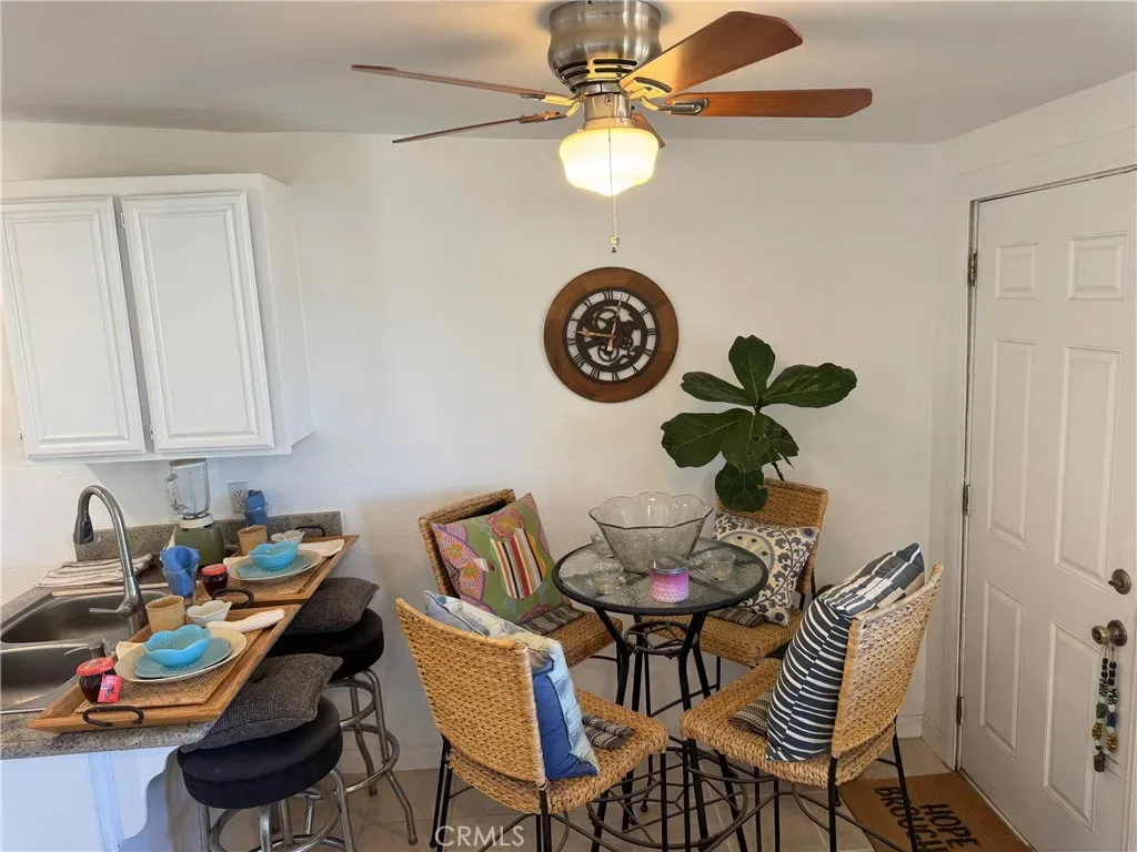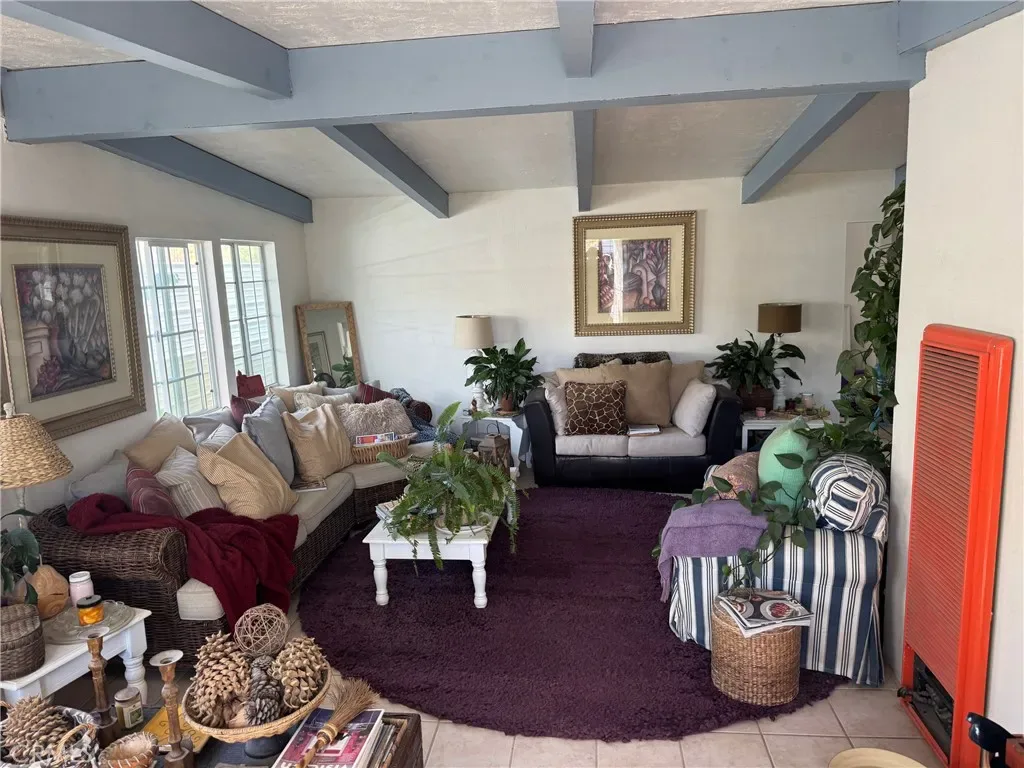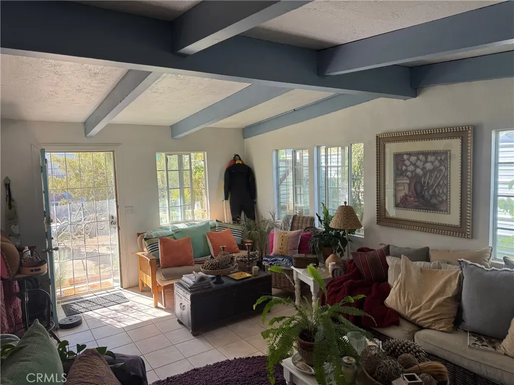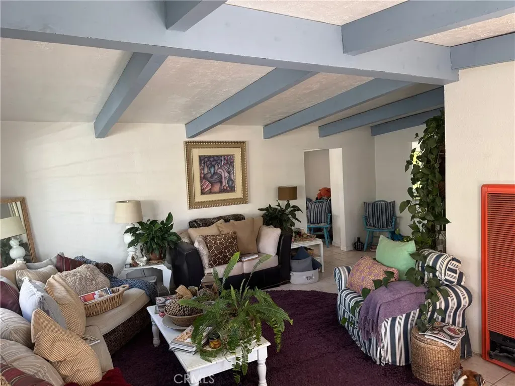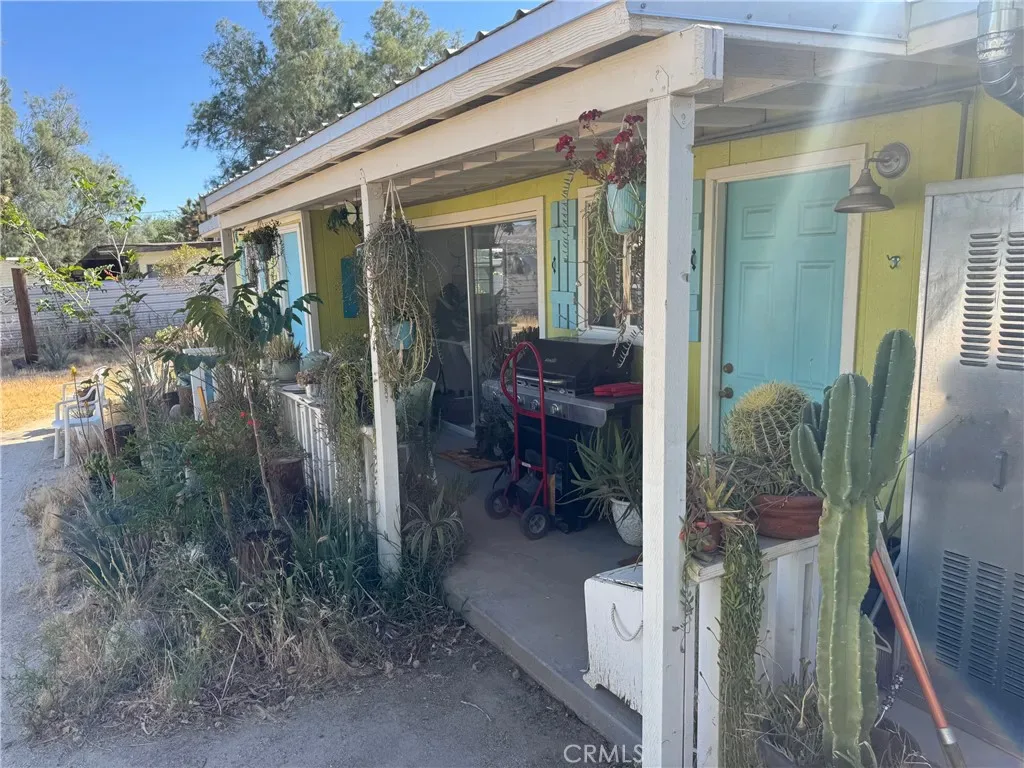 Inside, the home features a bright and open living space highlighted by vaulted, beamed ceilings, tile flooring throughout, and updated windows that bring in plenty of natural light. The kitchen is well-equipped and includes a casual dining nook with sliding glass doors leading to the backyard, along with a separate dining area ideal for entertaining or flexible use. The spacious bathroom includes a tub and shower combination. One bedroom offers built-in storage and comfortable proportions, while the second bedroom is notably large, filled with natural light, and includes a generous closet. An additional bonus room provides extra space suitable for a home office, creative studio, or guest accommodations. This home is ready for immediate enjoyment. With its well-designed layout, recent improvements, and inviting outdoor spaces, this property presents a fantastic opportunity in a sought-after Yucca Valley location. Come tour this property today!