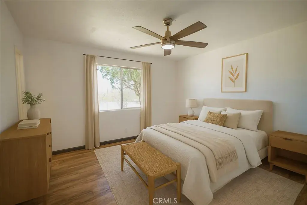 The primary parcel features a single-family residence with an open floor plan, abundant natural light, a newer roof, and energy-efficient mini-split systems. The second parcel provides additional land area that may allow for future planning or expansion, subject to Town of Yucca Valley approval. Buyer to verify zoning and intended use.