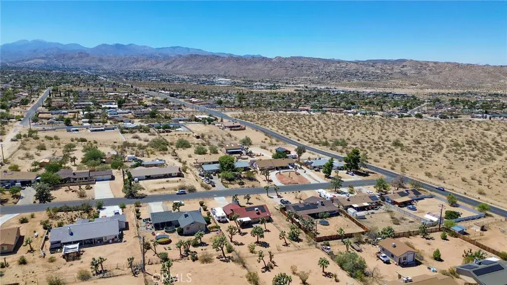 Welcome to this beautifully maintained 3 bedroom, 2 bath home sits on a large 0.41 acre lot in Western Hills Ranchos with stunning mountain views. Enjoy an open floor plan with bright living spaces and a spacious kitchen with bay windows. The fenced backyard is ideal for entertaining and outdoor living, featuring dedicated RV parking with full hookups, perfect for RV enthusiasts or extra storage. An attached 2-car garage and indoor laundry add convenience. Close to schools, shopping, and just minutes from Joshua Tree National Park—this home offers space, comfort, and the perfect desert lifestyle! Don’t miss this opportunity!