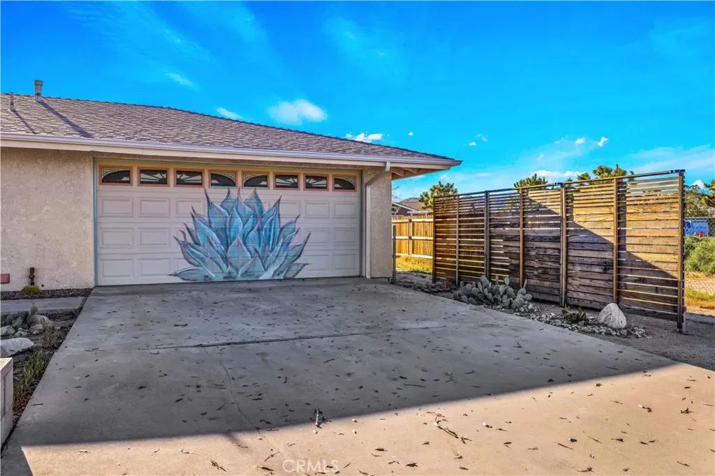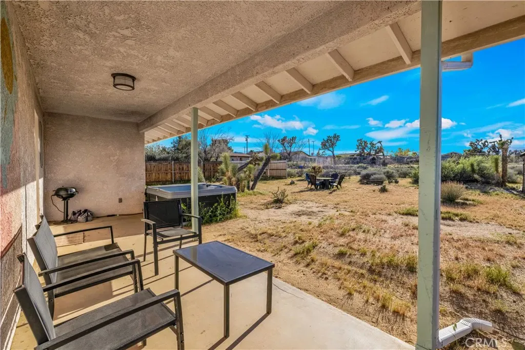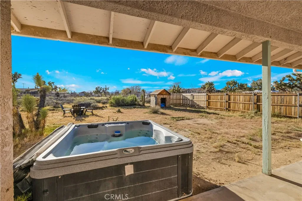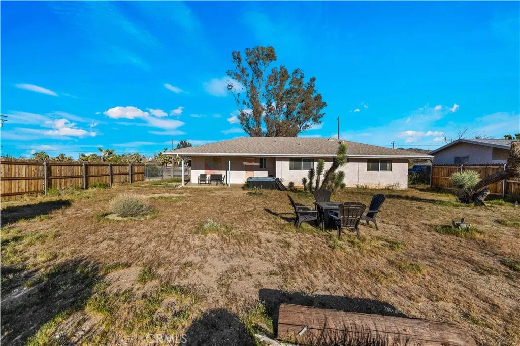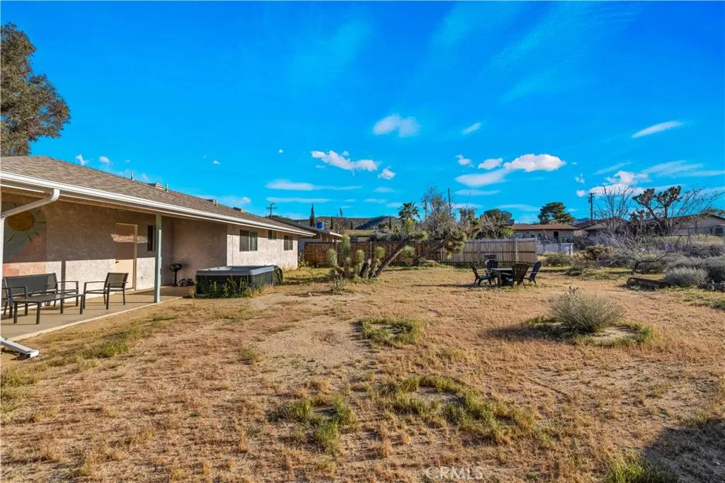 Beautifully fully remodeled 2-bedroom, 2-bath home in the heart of Yucca Valley, offering style, comfort, and an unbeatable location. This adorable home has everything you need, from a spacious yard to modern upgrades throughout. As you approach the property, you’ll appreciate the long driveway leading to the attached two-car garage, providing plenty of parking and convenience. Step inside and you’ll immediately notice the polished concrete floors that flow throughout the home, creating a clean and modern feel. The open-concept layout features a fully remodeled kitchen that flows seamlessly into the living and dining areas, complete with stainless steel appliances, ample counter space, and plenty of storage. The living room is generously sized and includes a ductless mini-split system for efficient heating and cooling. Both bedrooms are large and comfortable, with the guest bathroom featuring a floating vanity and shower-tub combo, while the primary bathroom includes a stylish walk-in tile shower. The attached two-car garage offers added functionality with laundry hookups, a utility sink, and additional storage space. Step outside to the back patio where you’ll find a large fenced backyard, perfect for relaxing or entertaining. Enjoy the above-ground spa and take in the beautiful western views, creating the perfect setting for desert evenings. This home is move-in ready and offers the perfect blend of modern upgrades and location. Schedule your showing today before it’s gone.