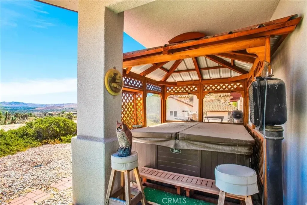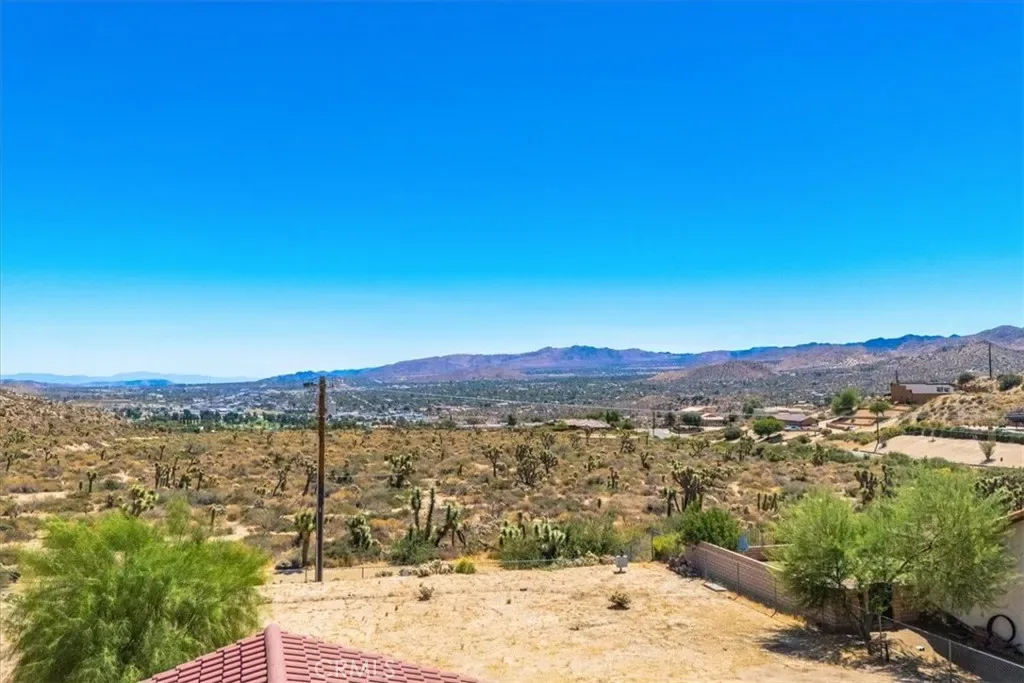Beautiful views high in the hills in the very desirable country club neighborhood is this modern style gem of a home on a large over a half acre lot. Featuring 3 bedrooms, 2 baths and a bonus room for an office, den, studio or other. The great layout boasts a split bedroom design with a large primary bedroom with a beautiful ensuite bathroom. The primary bathroom has dual vanity sinks and a large walk in closet. The living area is also spacious and has a great view from the near wall length windows and sliding glass doors. Pull up to the exhibition kitchen counter which makes for a great entertainers spot for those who love to cook. Plenty of cabinetry in the kitchen and a lot of counter space. There are really nice tile floors in the entry, kitchen, dining area and bathrooms and the bedrooms are carpeted. The laundry area is also well equipped with plenty of counter space and storage and the 3 car garage provides ample space for your vehicles, tools or toys. It is obvious that the previous owner’s pride of ownership provides for a well maintained and cared for home. You will find that the homes location is a great attribute. Being high up in the hills with no neighbors behind the home to obstruct the stretching views across the valley you can see for miles. The fully fenced back yard is a relaxing retreat with nice patios a gentle slope and private views. From this location it is not a far drive to the shops, restaurants and venues of Yucca Valley, chic Pioneertown and downtown Joshua Tree as well as only just over 20 minutes to the main entrance of the Joshua Tree National Park itself. Also just under a half hour drive to the Palm Springs area with it’s great restaurants, shops, many wonderful theaters and Acrisure Arena, home to the Firebirds and some incredible concerts and shows. Entertainers delight! Come take a look and you will want to make this one your new home.