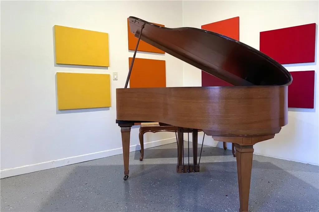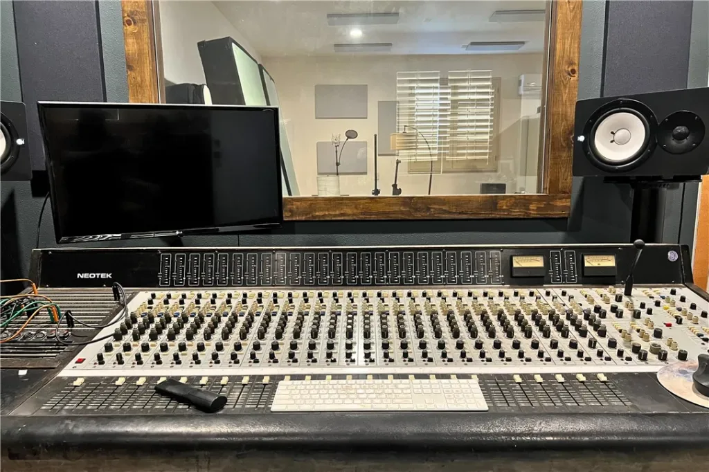 Adding to the property’s versatility is the professionally built recording studio, created from the original three-car garage. Designed with a control room and isolation/live room, the space features sound treatment, its own HVAC system, private entry/exit, and even a baby grand piano. The studio has also functioned as an art and photography workspace and was designed so it can be converted back to a garage if desired (buyer to verify).