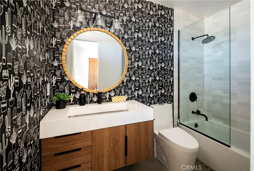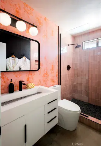 Interior features include polished concrete floors throughout and beautifully remodeled bathrooms. The thoughtful layout provides comfortable bedrooms and functional living spaces designed for both everyday living and guest enjoyment.
