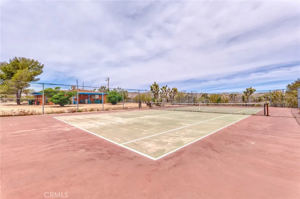 Charming Southwest style retreat set on over an acre of beautifully landscaped desert terrain, offering a rare combination of privacy, versatility, and lifestyle. Surrounded by mature trees and natural desert beauty, this fully fenced property stands out with its full size tennis court. easily convertible to a pickleball setup. creating incredible potential for personal enjoyment or a highly desirable short term rental feature.