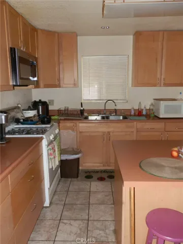 This single level home sits on a large lot with 2 car detached garage. Room for your toys or RV on both, right and left side with gate on the left. Rear area with large size, partially enclosed patio facing to a large back yard for family gathering and BBQ. Kitchen with modern wood cabinet and center island with lots of storage area. Central A/C and heat. Combination of wood and ceramic tile flooring through out the house and carpet in the bedrooms.