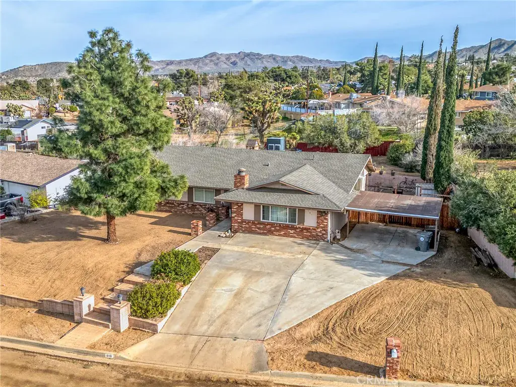Nestled in the desirable Story Park neighborhood of Yucca Valley, this charming 3-bedroom, 2-bath home offers space, comfort, and a true sense of home. Built in 1972 and set on a generous .31-acre lot, the 1,857 square foot layout is thoughtfully designed for everyday living and entertaining. The exterior welcomes you with classic brick accents, shutters, mature desert landscaping, and a convenient carport that adds both charm and function. Inside, you’ll find two separate living rooms, providing flexibility for relaxing, hosting, or creating a dedicated media or play space. Beautiful vinyl flooring runs throughout much of the home, complemented by abundant natural light. A separate laundry room with hookups and ample storage adds to the home’s practicality. The dining area sits just off the kitchen, making daily meals and gatherings easy and connected. The galley kitchen features ceramic tile flooring, stunning cabinetry, tile countertops, a gas stove, microwave, and a window over the sink that looks out to the backyard, perfect for keeping an eye on outdoor activity or simply enjoying the view. Two guest bedrooms offer vinyl flooring, recessed lighting, crown molding, and great natural light. The guest bathroom has been tastefully upgraded with a single-sink vanity topped with granite and a tiled shower/tub combination. The primary suite provides a comfortable retreat with carpet, recessed lighting, a ceiling fan, a spacious walk-in closet, and French doors that open directly to the backyard. The private en-suite bathroom features a tiled walk-in shower, creating a calm and functional space to unwind.