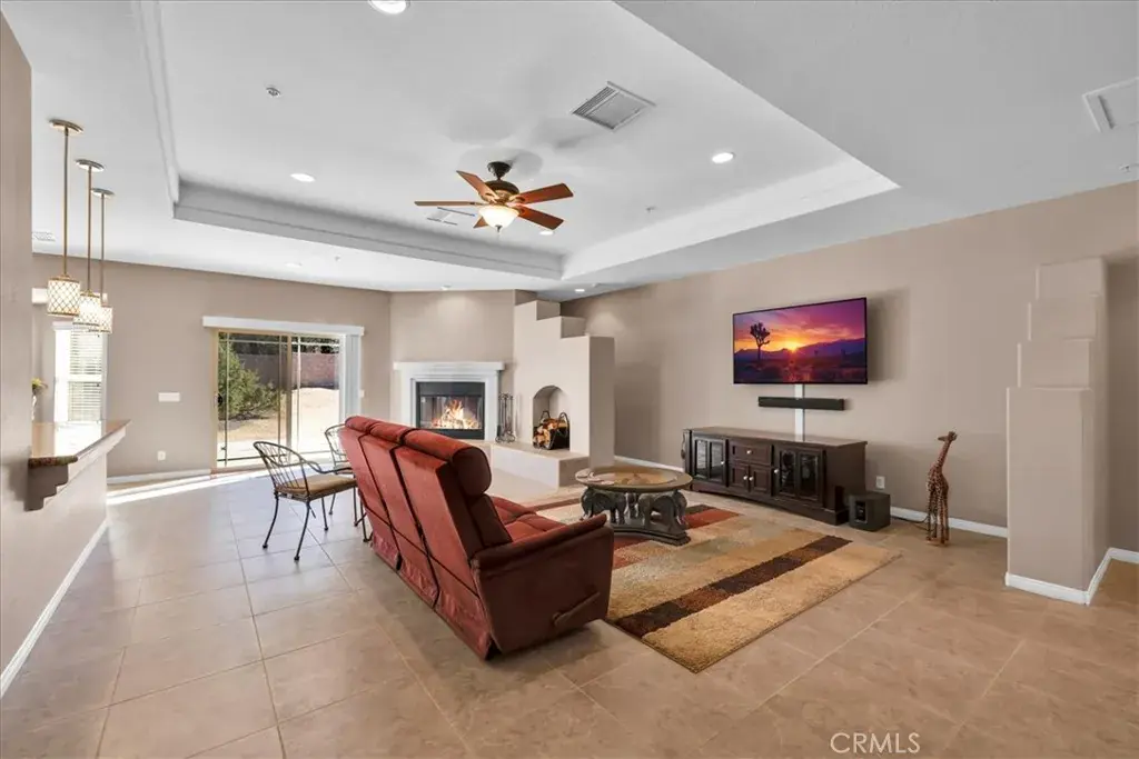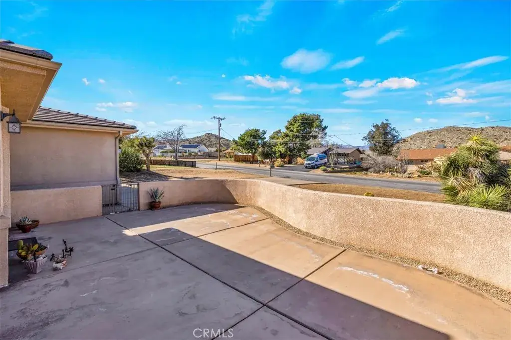 Welcome to 8443 Bannock Trl, a beautiful and meticulously maintained desert home nestled at the end of a quiet cul-de-sac in the desirable Juniper Terrace neighborhood of Yucca Valley. This stunning home features 2,700 square feet of living space with 3 bedrooms, 3.5 bathrooms, *PAID SOLAR* and numerous upgrades throughout. As you enter into the home’s Great Room you’ll find high ceilings with recessed lighting, earth-toned tile flooring and several large windows that let in an abundance of natural light. The living room is anchored with a cozy wood-burning fireplace and flows effortlessly into the kitchen and formal dining area. The well appointed kitchen is complete with granite countertops, amble cabinet space, a walk-in panty and stainless steel appliances (including 2 ovens, a built-in microwave and a wall mounted pot filler). Just off the kitchen is additional living space that could be used as a family room, den or game room with the existing pool-table available to convey. The spacious primary bedroom features a gas fireplace, large walk-in closets, a private patio door leading directly to the backyard and an ensuite bathroom with a dual sink vanity, soaking tub and separate walk-in shower. The 2 additional rooms are of generous size and include carpeted floors, ceiling fans and full en-suite bathrooms, complemented by an additional half bath for guests. Practical features include a laundry room, linen and coat closets, and a built-in office area ideal for remote work or study. Outdoor living is just as impressive with a front courtyard accessible from one of the secondary bedrooms, a fully enclosed backyard with split-face block walls, RV parking, and an electrical hookup for a spa. Not to mention the oversized 3-car garage, cement tile roof, seamless exterior gutters and the HVAC and water heater were both replaced in 2020. The undeveloped neighboring parcel provides a peaceful desert setting with room to live, work and entertain. Come take a look & let this home’s charming allure do the rest, your new desert home or weekend retreat awaits!