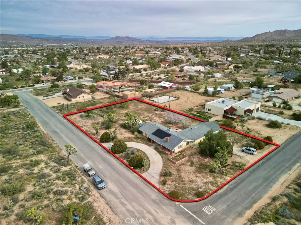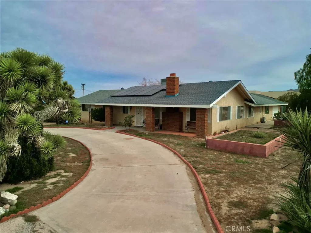 Discover this spacious Yucca Valley home offering over 2,400 sq ft of comfortable living space on a corner lot of more than ¾ of an acre. Located in the Sky Harbor area, this 4-bedroom, 3-bathroom property features a desirable layout, including two primary bedrooms with their own private baths—perfect for multi-generational living or guest accommodations. Inside, you’ll find a warm and inviting living room with a cozy fireplace, a formal dining room, and a charming breakfast nook for casual meals. Wood and tile flooring flow throughout the home, adding both style and durability. The convenient indoor laundry room and attached garage provide everyday practicality. Recent upgrades include a newer HVAC unit, a new shed for extra storage, and a low solar lease to help keep energy costs manageable. The expansive, fully usable lot is complete with a circular driveway, chain link fencing, and plenty of space for RV parking, outdoor entertaining, or future possibilities.