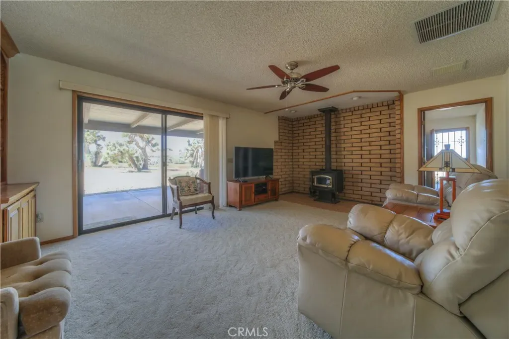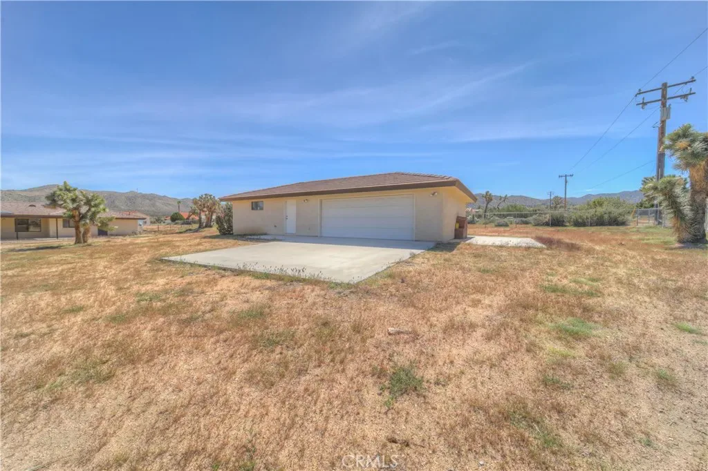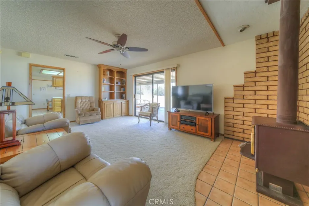 Welcome to this charming single-story ranch-style home, perfectly situated on 1.6 acre lot. Featuring a spacious 3-car attached garage, this residence offers 4 bedrooms and 2 bathrooms with a thoughtfully designed split floor plan for privacy and convenience. The home boasts a formal living room and dining room, ideal for entertaining guests, while the large family room with a cozy wood-burning stove provides the perfect space for relaxing evenings. A generous indoor laundry room adds practicality to everyday living. Step outside to enjoy a covered patio and a fully fenced backyard with durable chain-link fencing, providing ample space for outdoor activities. Additionally, a separate 48×24 2-car garage with workshop area, complete with 220 wiring, offers plenty of room for hobbies, storage, or additional parking. Comfort is key with dual AC and heating units, supplemented by swamp coolers and efficient hot water systems, ensuring year-round comfort. This home combines functionality, style, and outdoor space, making it a must-see for anyone seeking a versatile and inviting property.