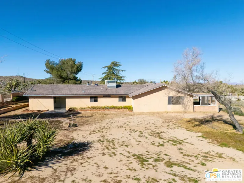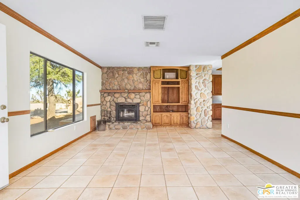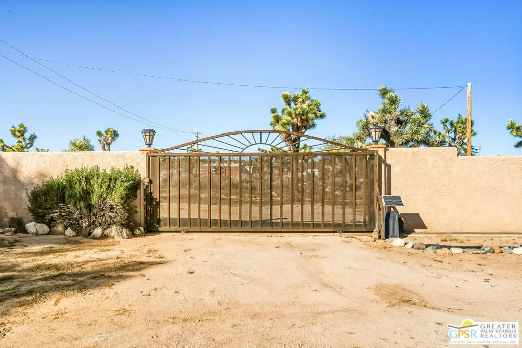 BACK ON THE MARKET THRU NO FAULT OF THE PROPERTY……….LOOKING FOR A PRIVATE WALLED GATED ESTATE TYPE PROPERTY? THIS IS IT. A unique property with a cabin type feel with a beautiful rock fireplace in the great room. Two small stove fireplaces one in the kitchen and one in the primary. Great floor plan with big primary with attached jacuzzi room and sun porch. HUGE PROPERTY with room for ADU, TENNIS COURT, POOL or extra garage buildings if you’re a car collector or a contractor with work vehicles. Open and expansive desert views. THIS ONE IS SPECIAL AND HAS SO MUCH POTENTIAL.