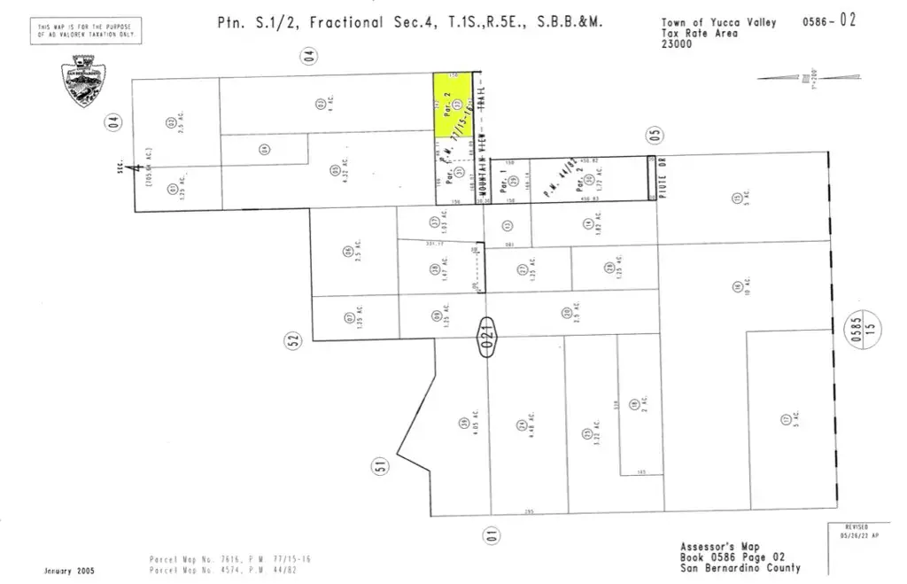 Discover your next opportunity with this expansive 36,300 square foot parcel located on Mountain View Trail in the serene and scenic city of Yucca Valley, California (92284). Nestled in a sought-after desert landscape, this spacious lot offers the perfect blend of privacy and natural beauty. Whether you’re envisioning a peaceful retreat or an investment for future development, this prime location presents endless possibilities. With easy access to local amenities, stunning desert views, and the potential to create something truly unique, this parcel (APN: 0586-021-32) is a rare find. Don’t miss the chance to own a piece of Yucca Valley’s charm! ****No soils reports, surveys, etc., have been done. Buyer and buyer’s agent to verify all information with the city or county for allowable uses and requirements and rely on their own investigations. **Buyer responsible for checking zoning, utilities, permits and exact property boundaries. ****