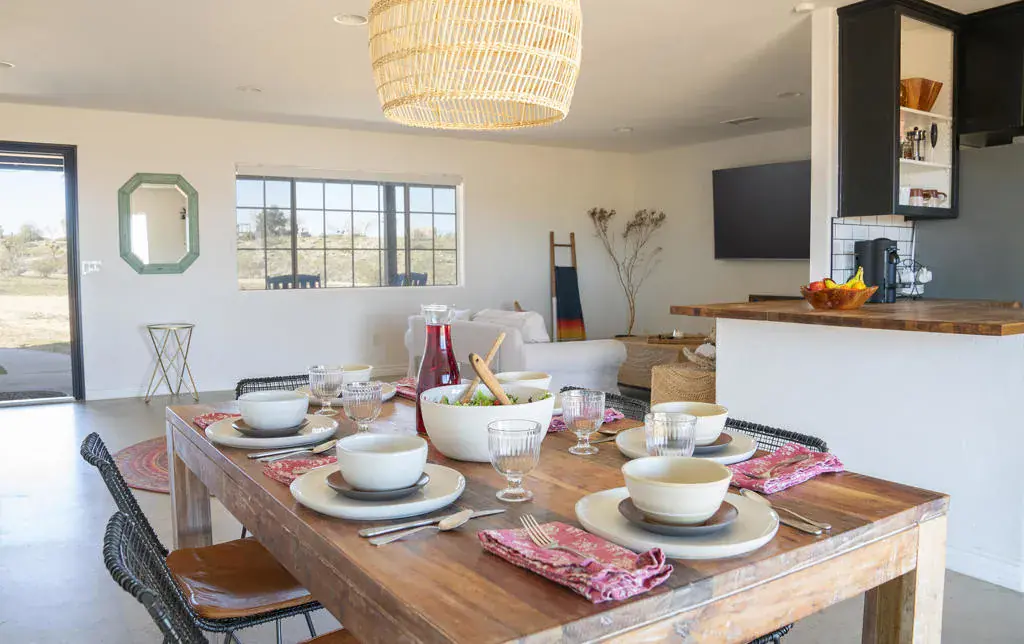 Wonderful Custom Home on 5 Usable Acres with Mountain Views, PAID Solar & Fully FurnishedWelcome to this beautifully maintained 3-bedroom, 2-bath custom home, built in 2006 by Stuart Kirk. Situated on a desirable 5-acre corner lot, this flat and fully usable property offers sweeping mountain views and exceptional potential for equestrian use. With ample space to add a barn, arena, round pen, and paddocks, it’s ideal for horse owners or anyone seeking wide-open land with endless possibilities.Inside, the home features a bright, open floor plan with abundant natural light throughout. The primary suite includes a spacious walk-in closet with built-ins and an en-suite bathroom with dual sinks and a step-in shower. The additional bedrooms are generously sized and highlighted by charming box windows.This property is being sold fully furnished, making it truly turnkey for personal enjoyment or an excellent short-term rental opportunity. Outdoor living shines here with a fire pit, cowboy pool, hammocks, and a hot tub–perfect for relaxing under the stars and embracing the peaceful desert landscape.Additional features include a finished and insulated 2-car garage, a circular driveway, and a fenced backyard for privacy and convenience. Located in a quiet and serene area, this home reflects true pride of ownership and is move-in ready.Buyer to verify all information, permits, square footage, lot size, zoning, intended use, and any short-term rental regulations to their own satisfaction. All information is deemed reliable but not guaranteed. Buyer to conduct their own due diligence with appropriate professionals, and to hold agent and broker harmless from any discrepancies or claims arising from reliance on the information provided.
