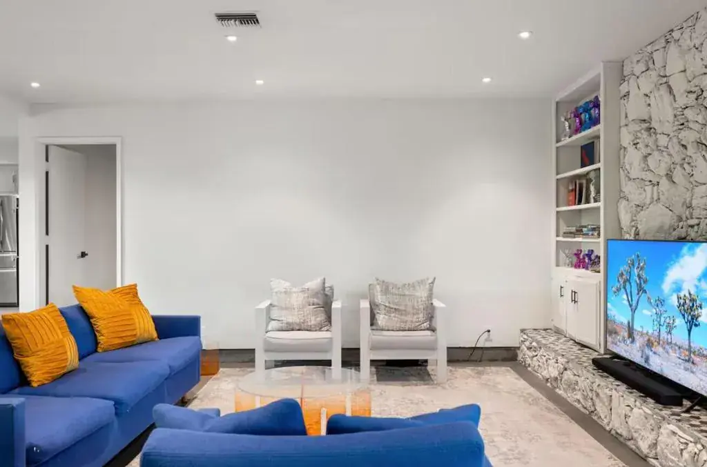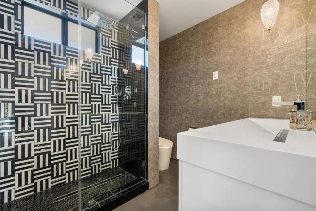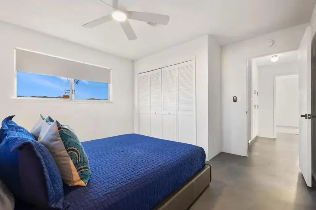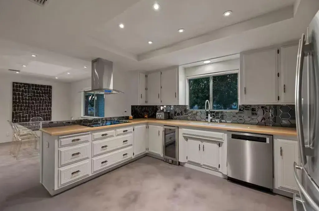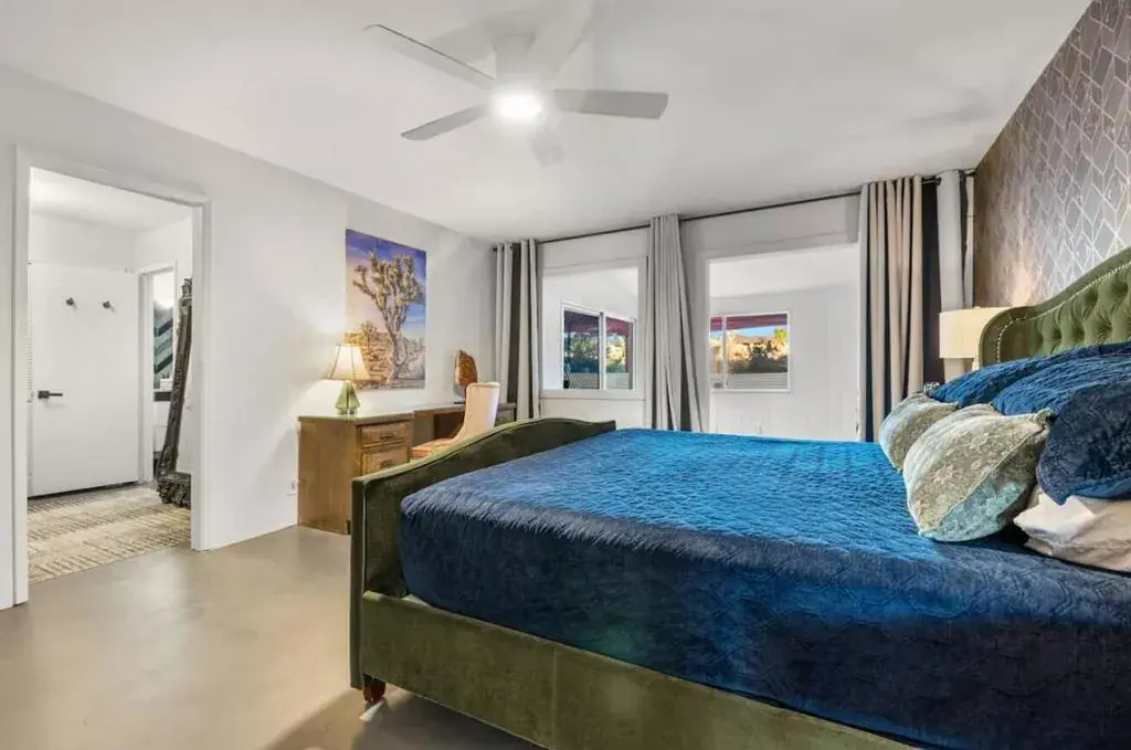 Beautifully remodeled turn-key hillside pool home overlooking Yucca Valley. Expansive 3 bed and 3 baths on over .33 acres with an upgraded 3 car garage. Western Hills Estates is a premier neighborhood known for high valued homes, panoramic views, quiet streets and boulder studded hills. Manicured desert fauna encompasses the arched driveway leading to an entryway alcove. Front door opens to the foyer with gallery wall. Spacious living room with fireplace hearth rock wall and craftsman built in bookshelf. Professionally designed remodel with concrete floors, recessed lighting, central ac/heat, smooth and sleek walls and ceilings throughout. Gourmet chef’s kitchen with stainless steel appliances, island vent hood, mirror tile backsplash, dual basin sink, long counters, ample cupboards and cabinets. Large dining area directly off kitchen. California sun room with bonus area and skylights ideal for a den, library, office or a second living room. Three bedrooms with substantial space. Oversized primary bedroom with walk in closet enjoys built in cabinetry and a private bathroom. Each bathroom is fully remodeled with designer marble and tile showers, large glass doors, floating vanities and modern design. Laundry room. Glass sliders open to the patio with in-ground pool and spa surrounded with privacy walls. Pergola style area with sunbathing loungers. Covered area for dining alfresco and outdoor sofas. Expansive concrete patio space to entertain many guests. Huge 3 car garage offers extensive space for storage. Ideal location for just a short drive to organic restaurants, cafes, bars and all amenities. 11 miles to Joshua Tree National Monument where about 3 million tourists visit annually. 44 miles to Palm Springs. Don’t wait on this one call now!